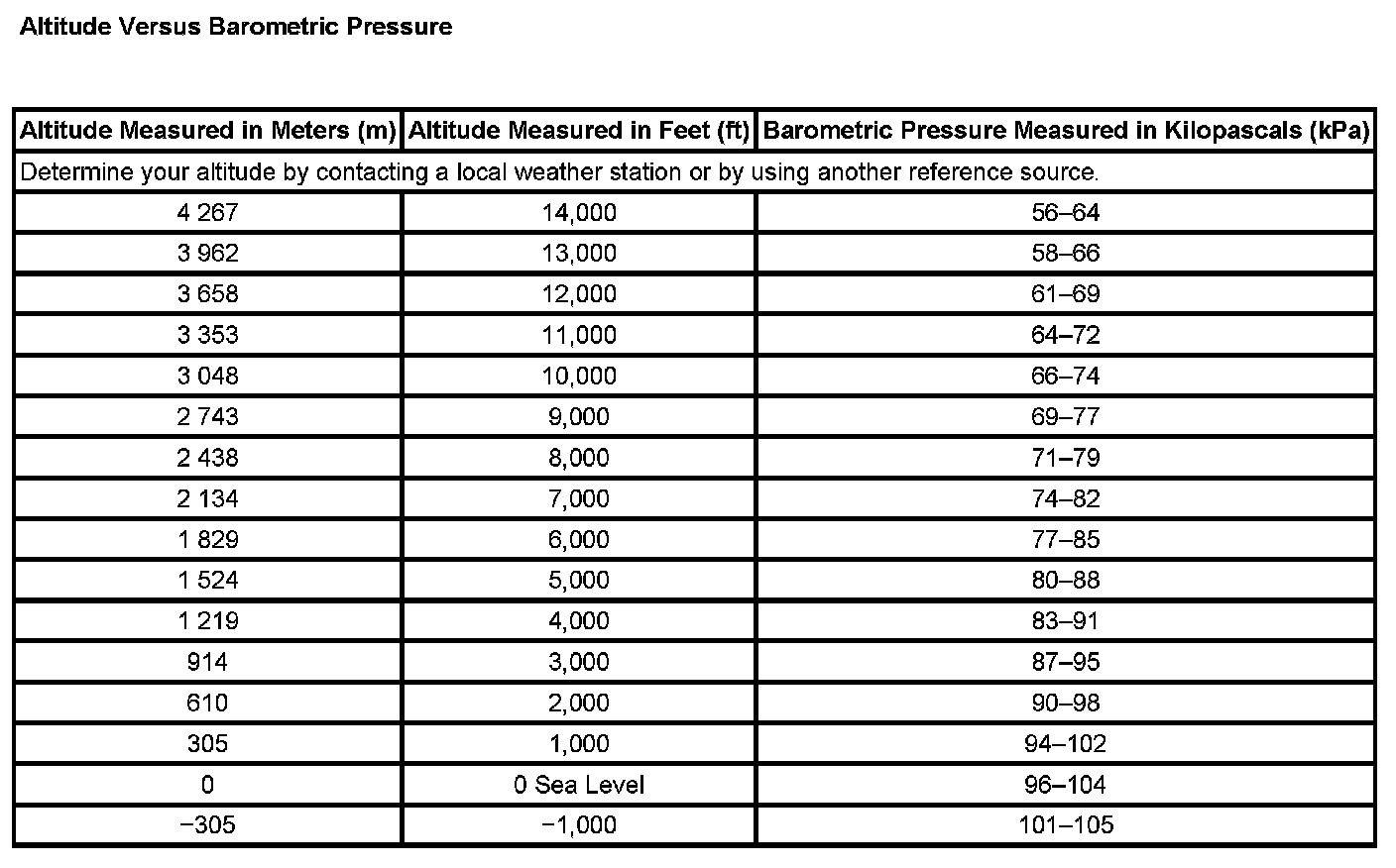 Altitude Versus Barometric Pressure: