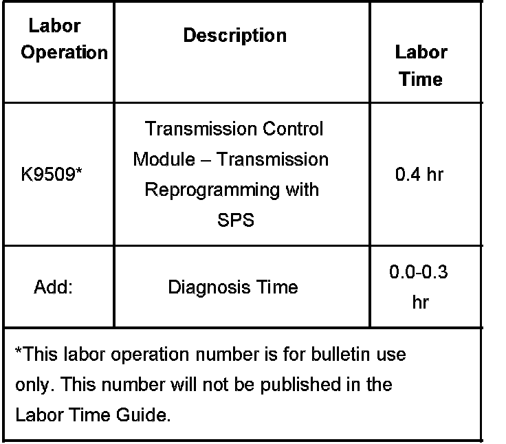 A revised transmission calibration has been developed to address both of these issues. Reprogram the TCM with an updated software calibration. This new service calibration was released with TIS satellite data update version 3.5 or later, available March 20, 2006 (March 22 in Canada). As always, make sure your Tech 2(R) is updated with the latest software version.