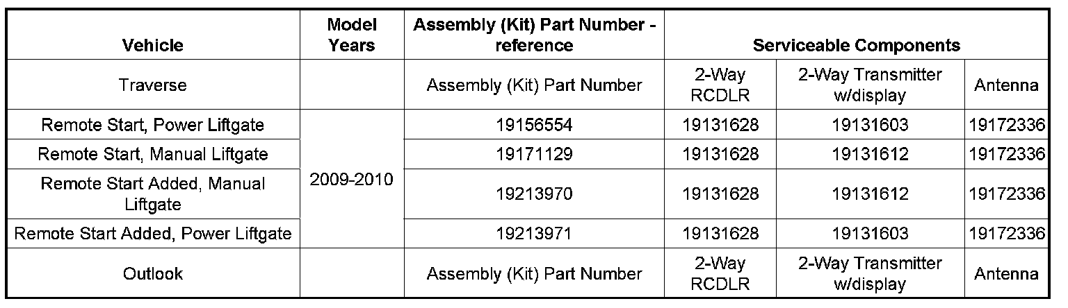 Subject: GM Accessories: 2-Way Advanced Remote Start Systems Part Information