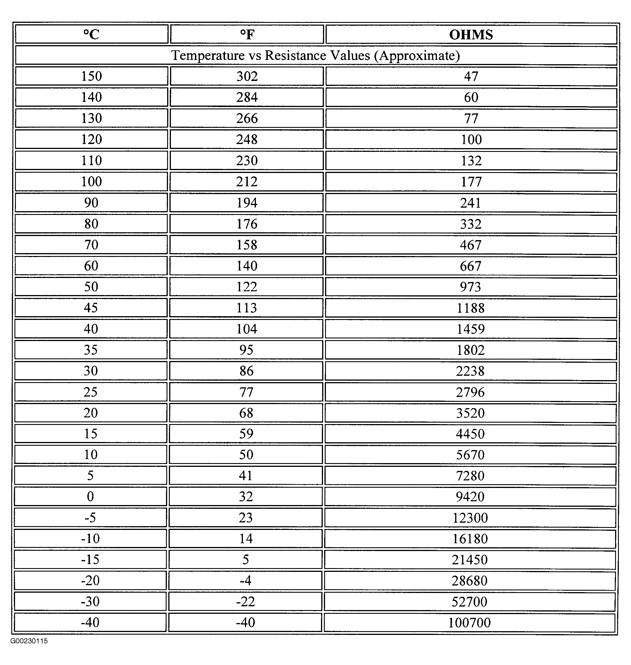 - Remove ECT sensor. See ENGINE COOLANT TEMPERATURE SENSOR under SENSORS in REMOVAL & INSTALLATION - CORVETTE article. Suspend ECT sensor and a thermometer in a pan of water. Place the pan on a burner or hot plate. Test the resistance of the ECT sensor through 50-194°F (10-90°C). See Figure. Does the resistance and temperature closely match the Temperature vs. Resistance table? If yes, go to next step. If no, go to step 9.