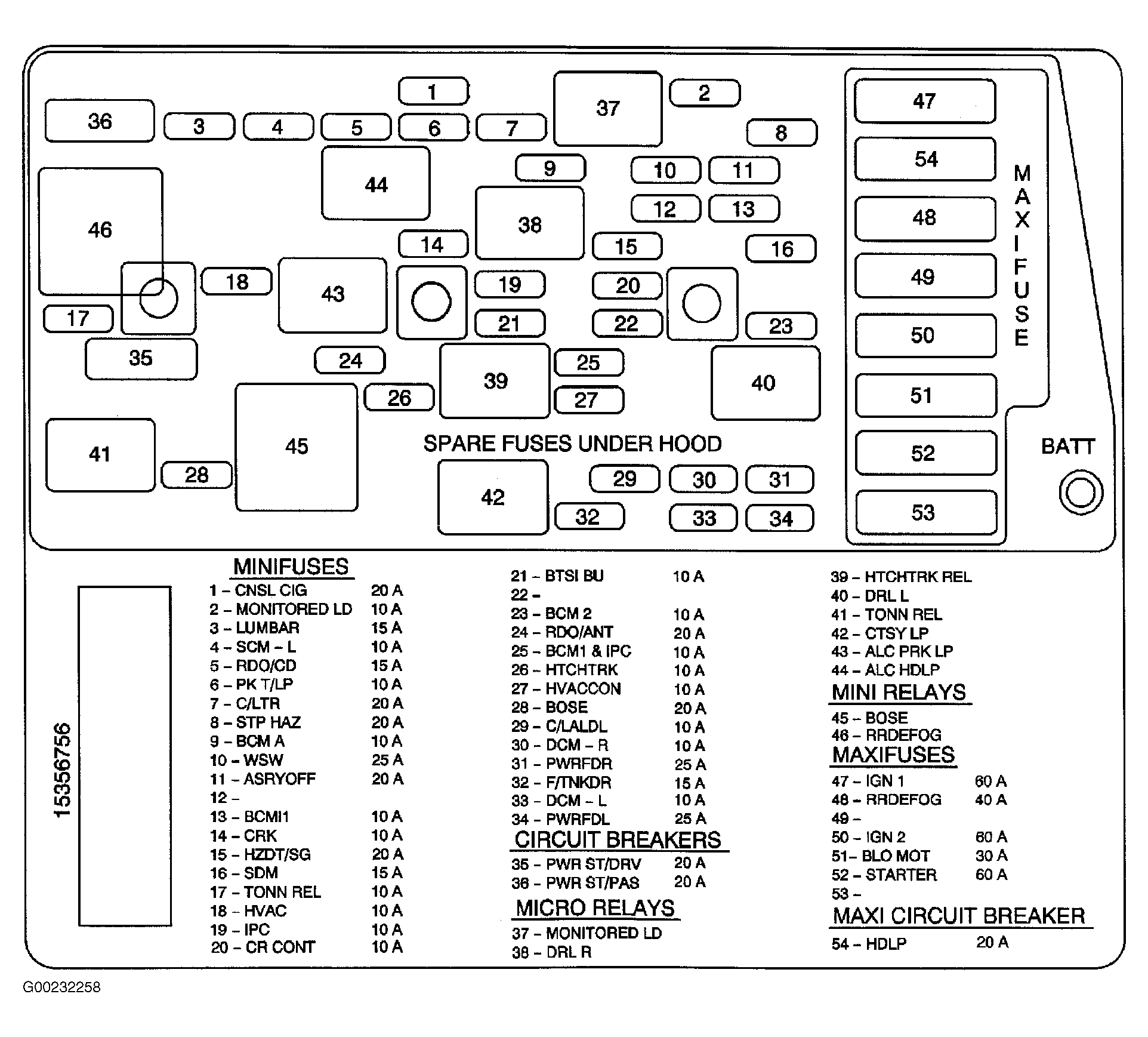 NOTE: For Instrument Panel (IP) fuse block details, see Figure . For underhood fuse block details, see Figure .