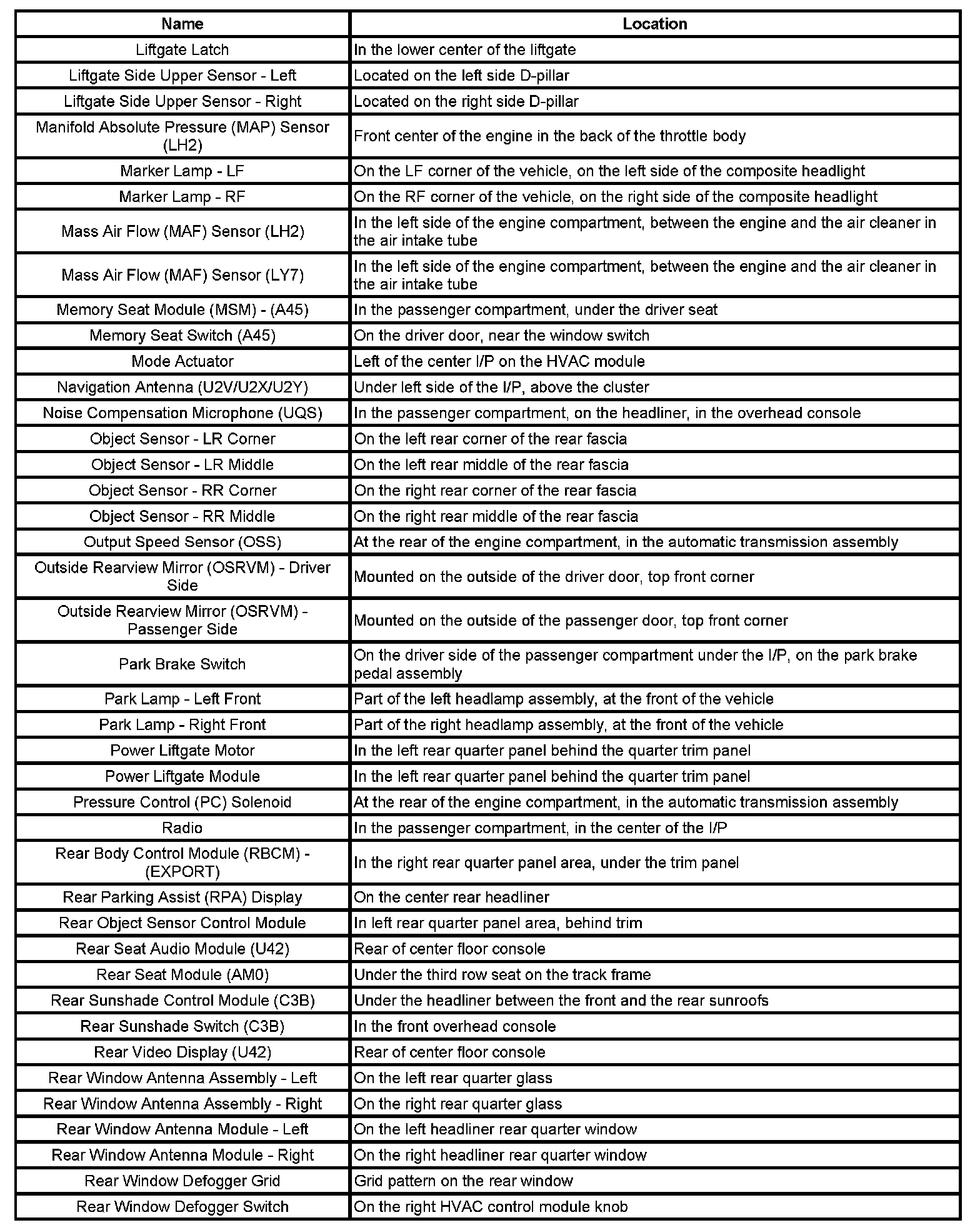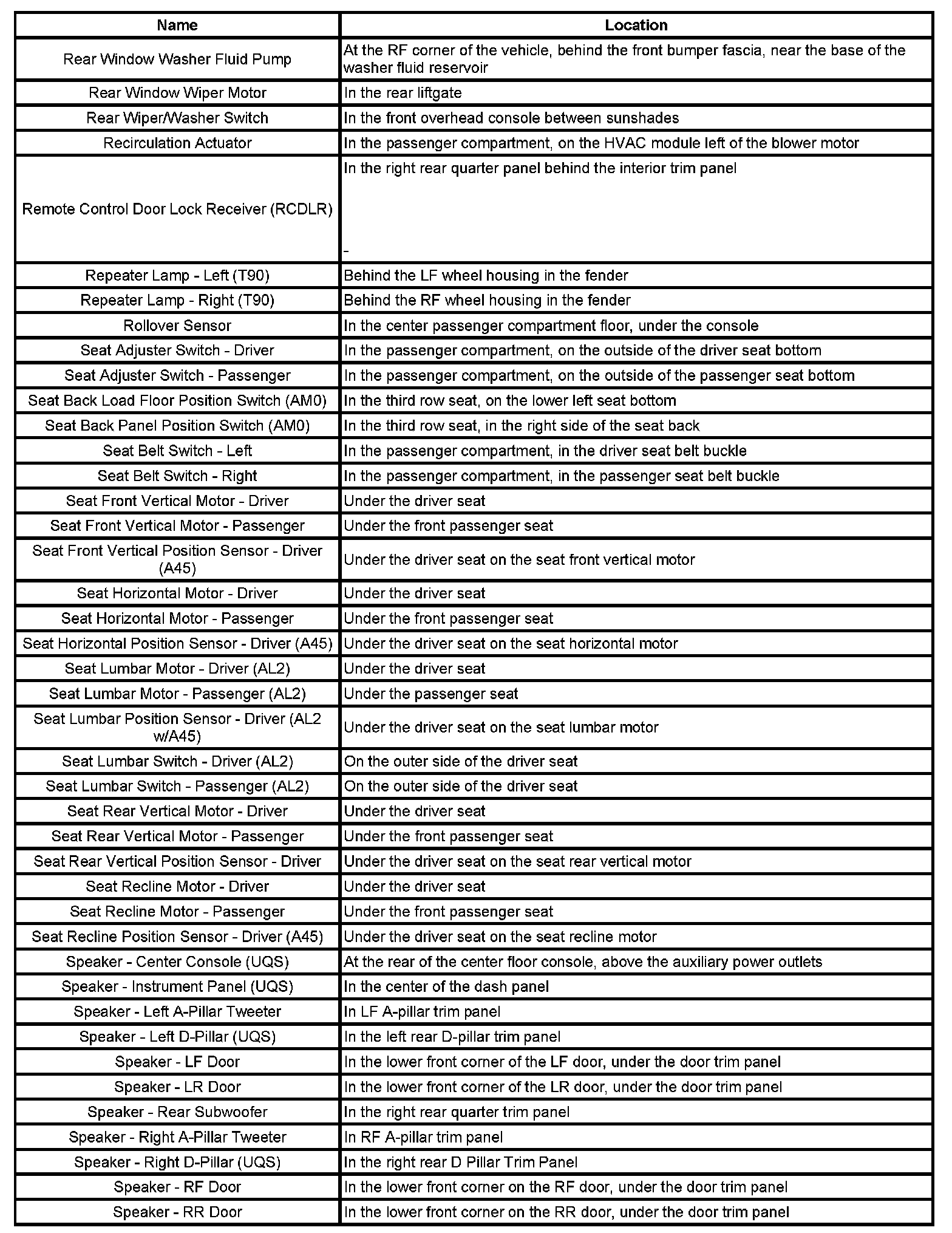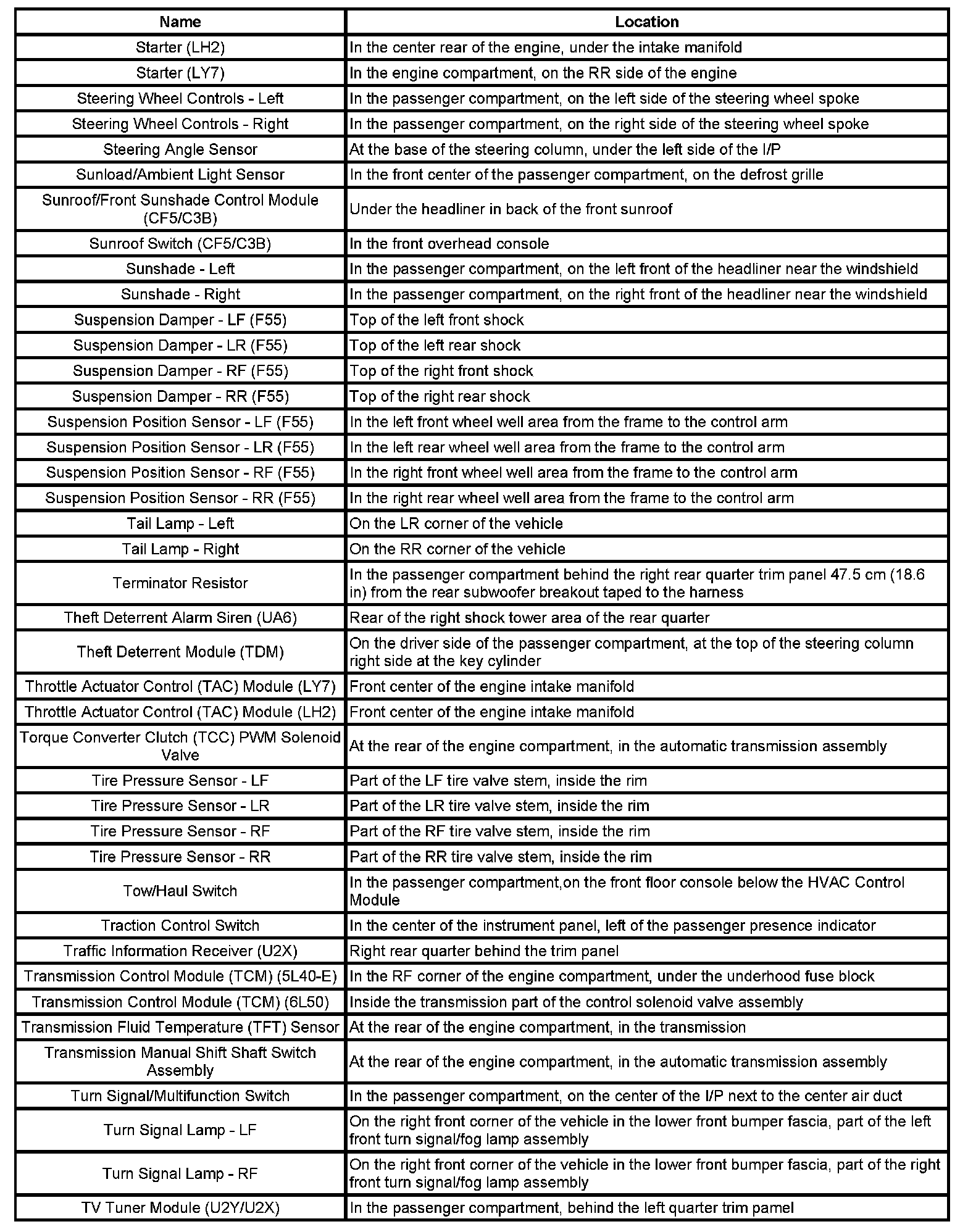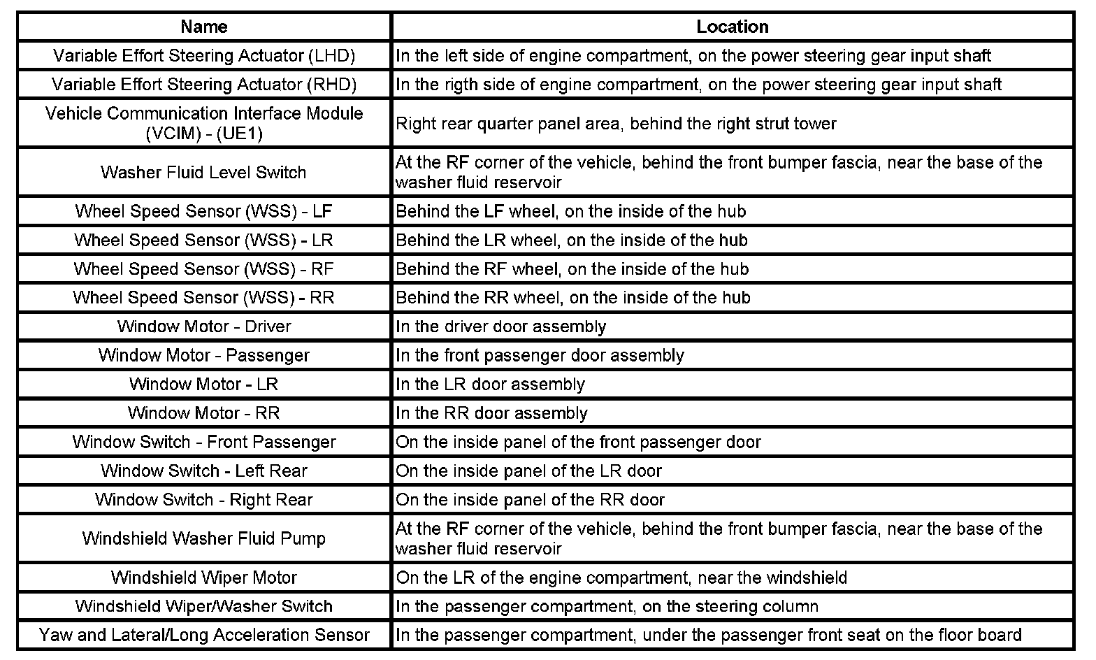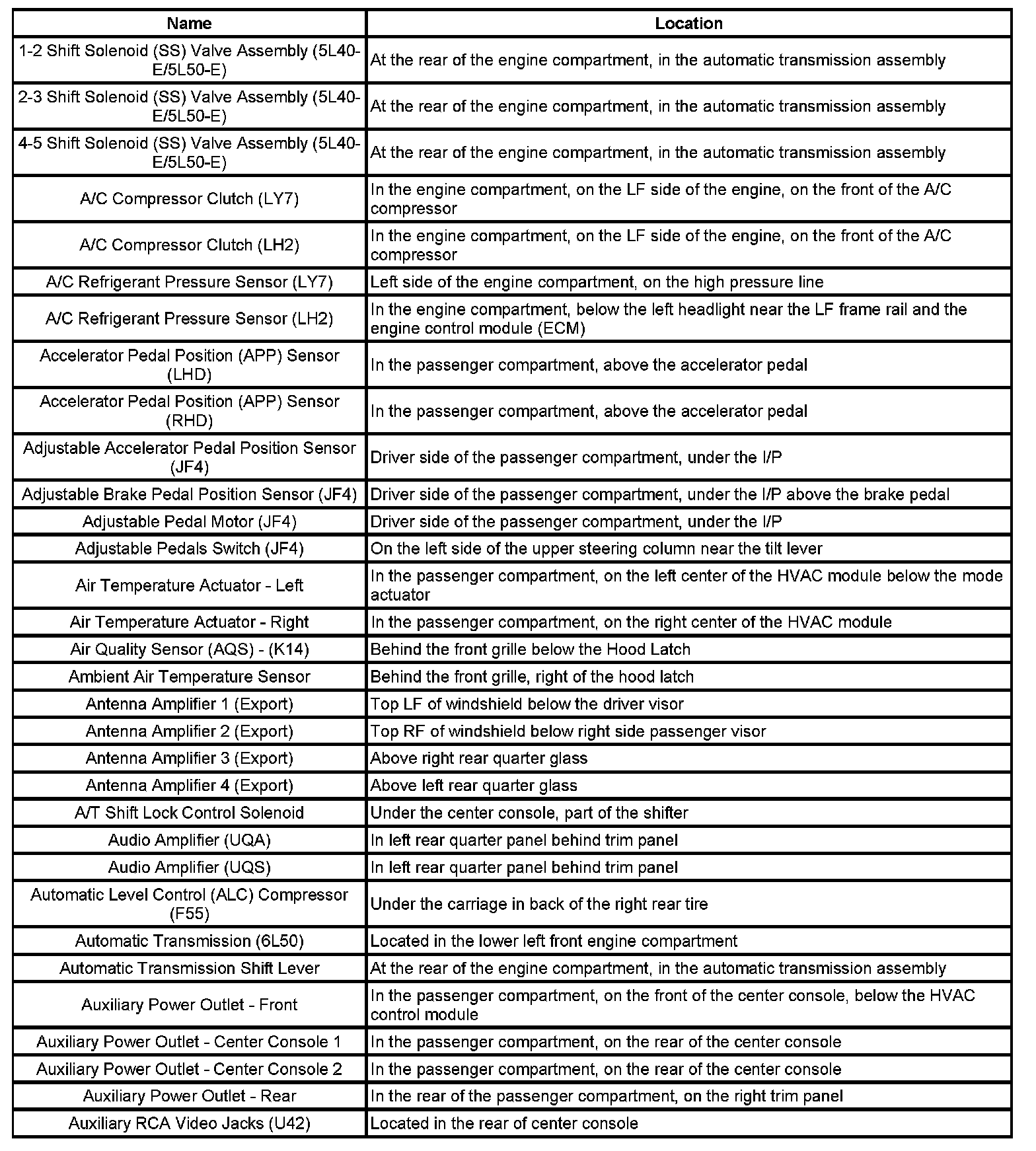 Master Electrical Component List