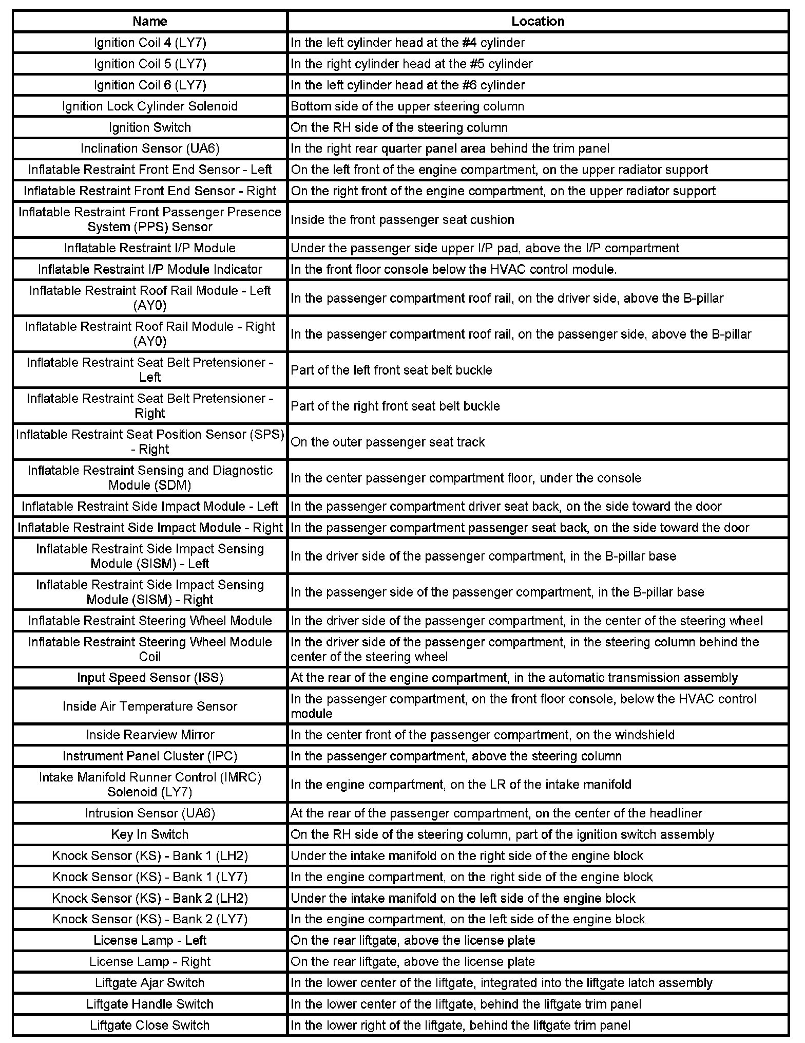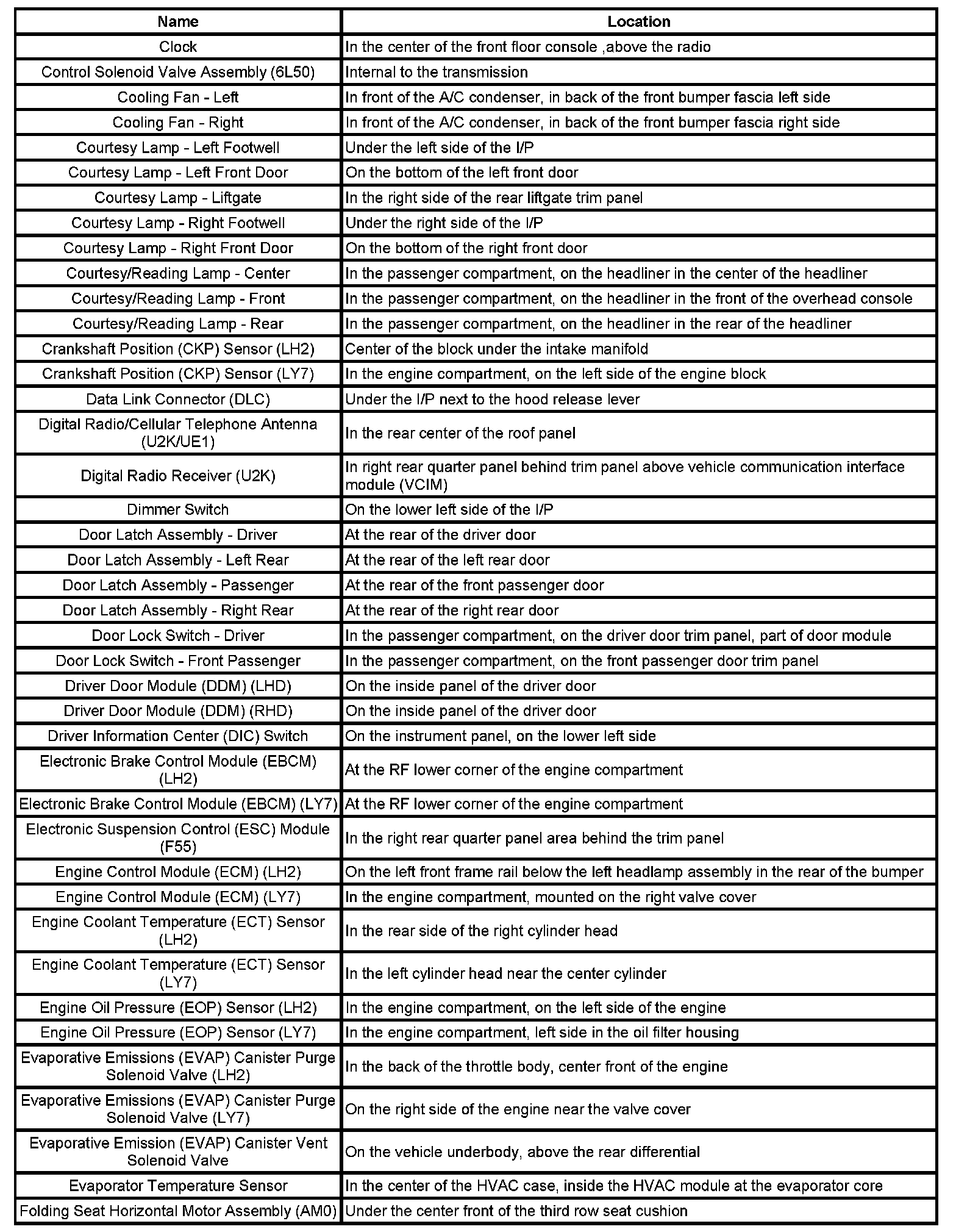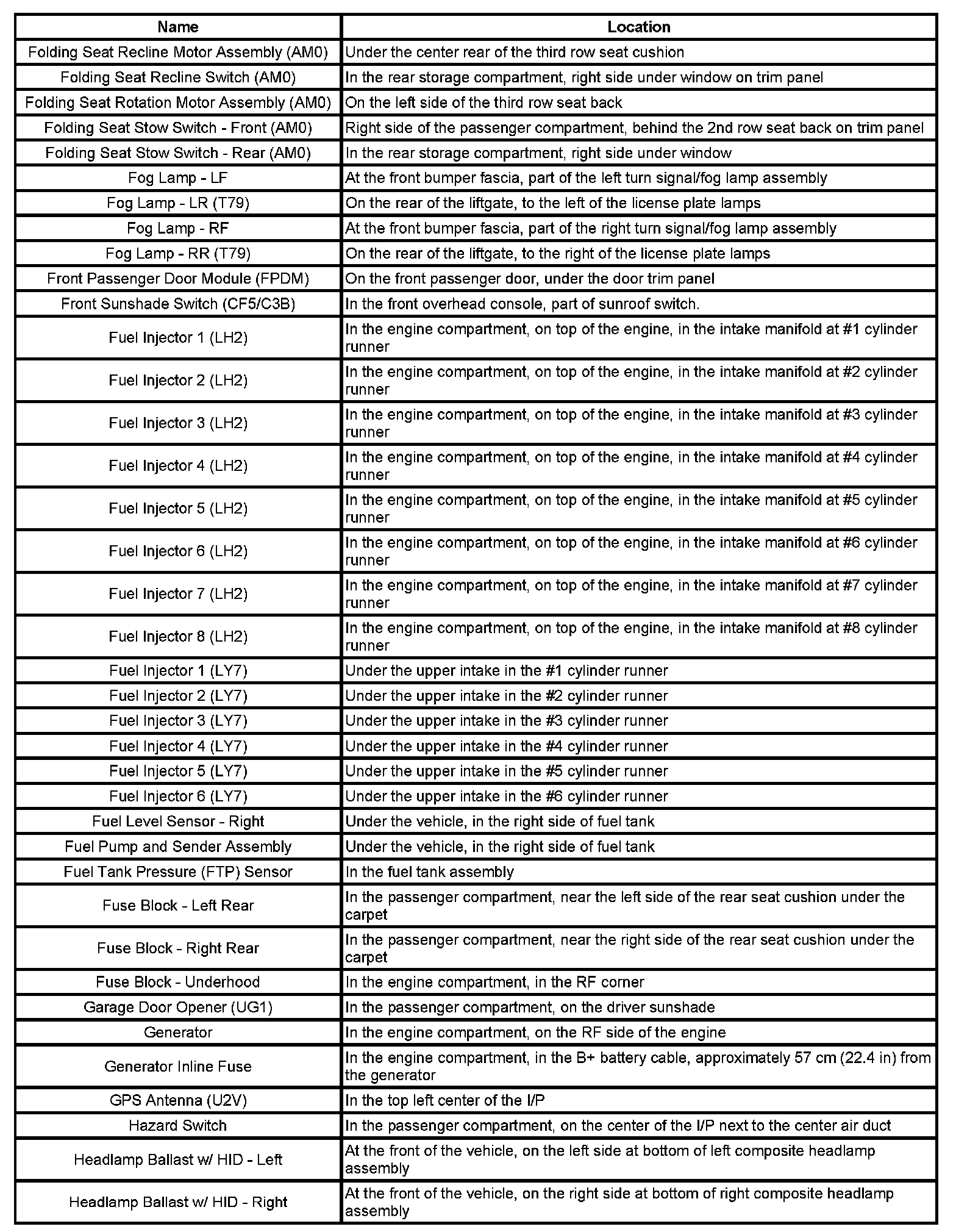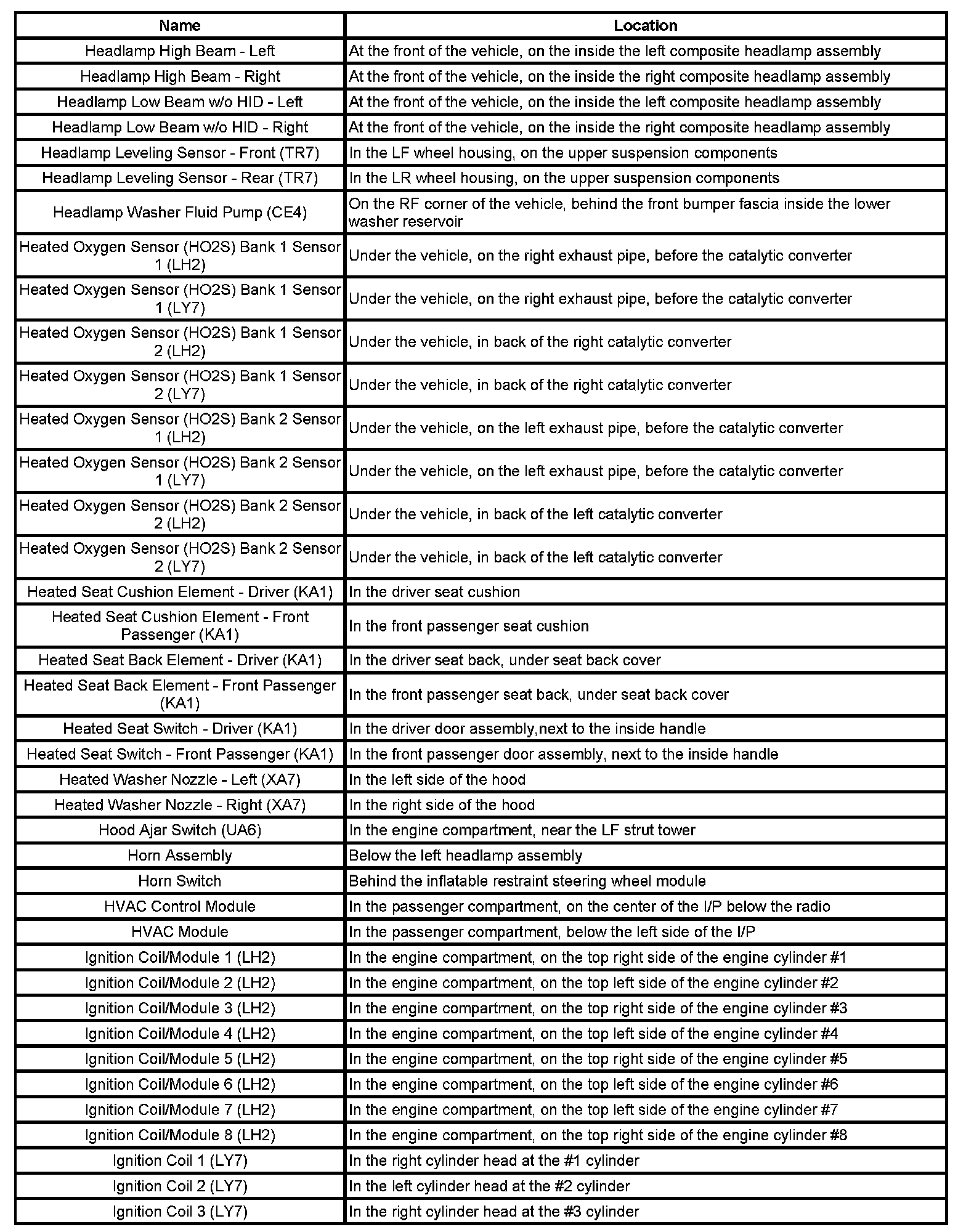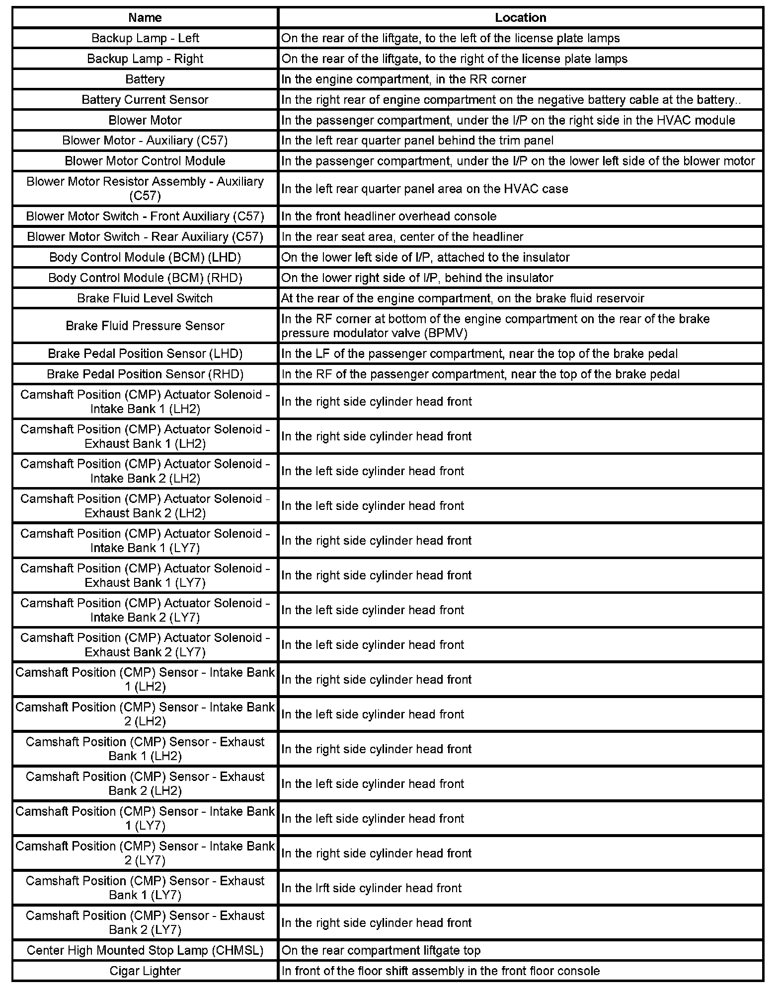 Master Electrical Component List