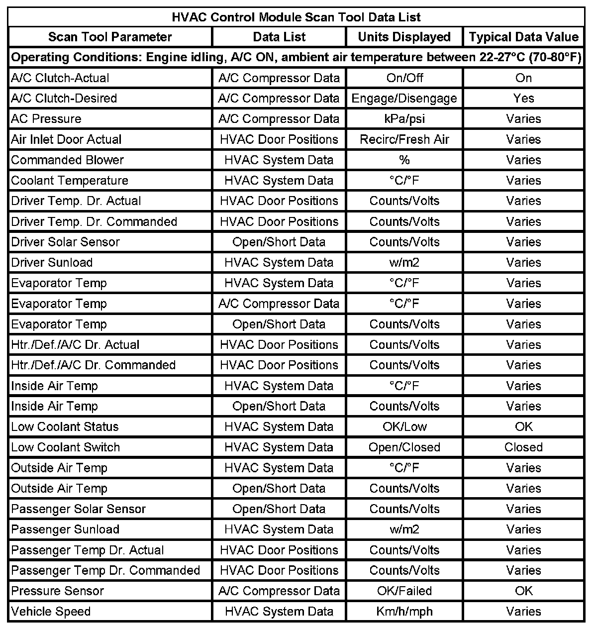 Scan Tool Data List