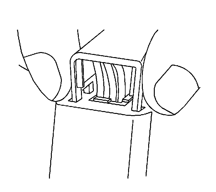 9. Use J 38125-12A to gently lift the terminal retaining tab while gently pulling the wire out of the back of the connector. Always remember never use force when pulling a terminal out of a connector. If the terminal is severely bent or damaged, it may be possible on some connectors to push the wire out of the front of the connector instead of pulling it through. This will prevent damage to the internal seals of the connector. Once the terminal is pushed out of the connector, cut the wire as close to the terminal as possible and pull the wire through the connector.