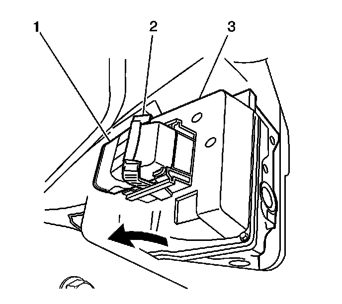 8. Rotate the EBCM connector tab (2) forward to the unlocked position.