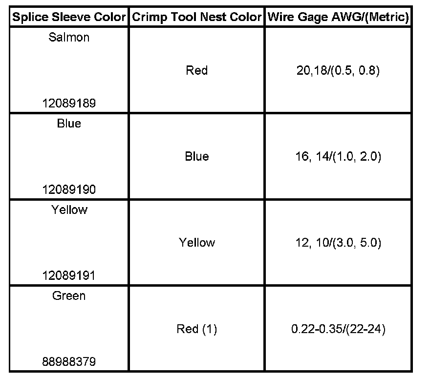 5. Select the proper duraseal splice sleeve (2) and the required crimp nest tool. Refer to the Crimp and Seal Splice Table.