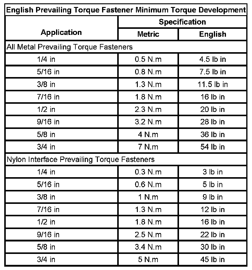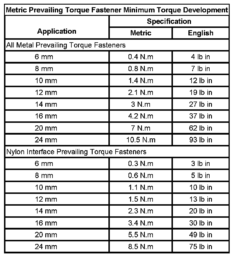 * The fastener develops the specified minimum torque against its counterpart prior to the fastener seating