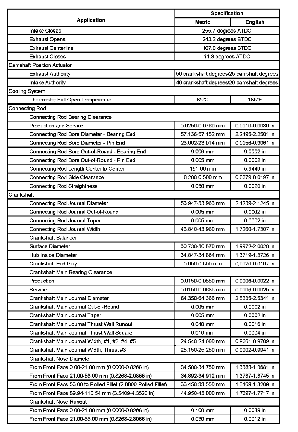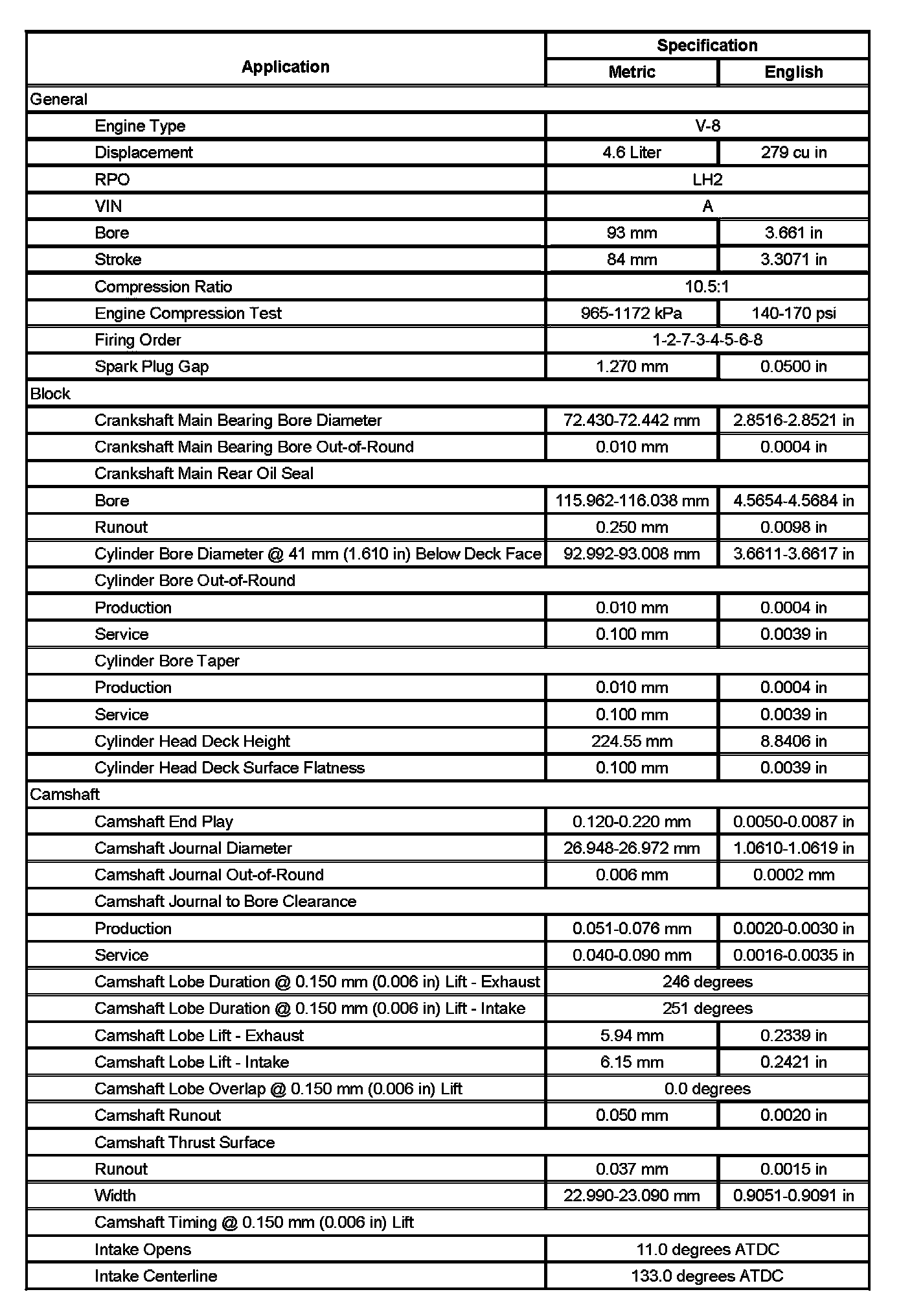 Home >> Cadillac >> 2007 >> SRX AWD V8-4.6L >> Repair and Diagnosis >> Specifications >> Mechanical Specifications >> Engine >> System Specifications >> Engine General Specifications & Service Limits