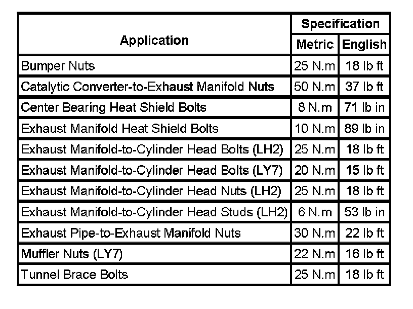 Fastener Tightening Specifications:
