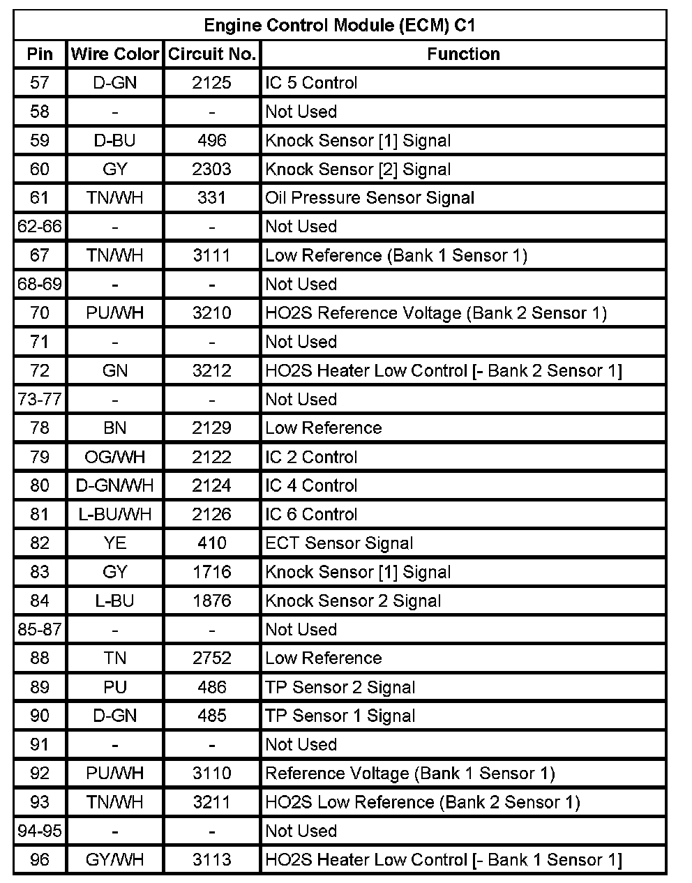 Engine Control Module (ECM) C1 (Pin 57 To 96):