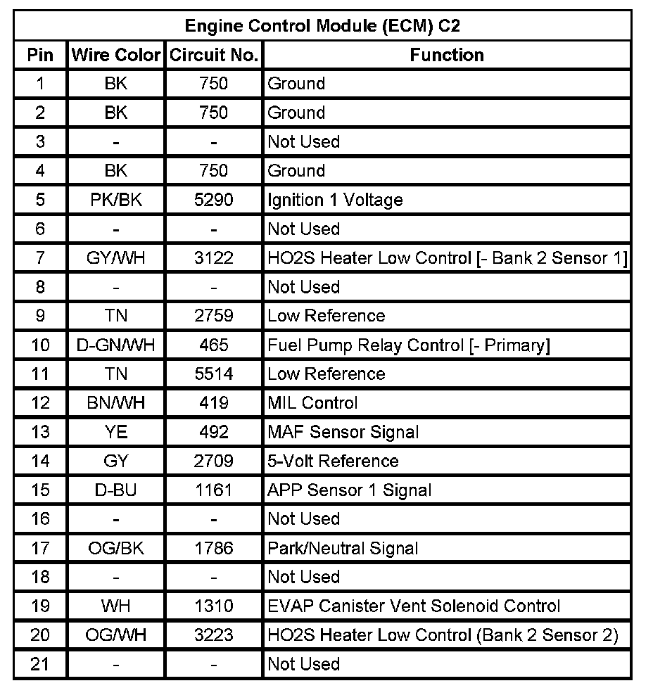 Engine Control Module (ECM) C2 (Pin 1 To 21):