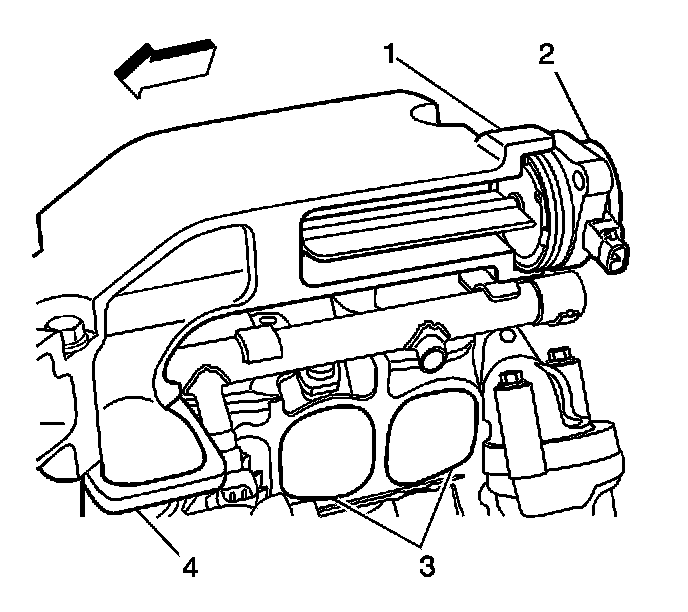An intake manifold runner control (IMRC) valve (2) is used to change the intake manifold runner configuration. When the IMRC valve is open, the intake manifold is configured to one large plenum (4). When the IMRC valve is closed, the intake manifold is configured to two smaller plenums (3). The two intake manifold runner sizes result in different torque curves which improves performance at low and high engine speeds. The IMRC valve is located in the intake manifold (1). The IMRC valve solenoid is supplied with ignition 1 voltage and is controlled by the engine control module (ECM).
