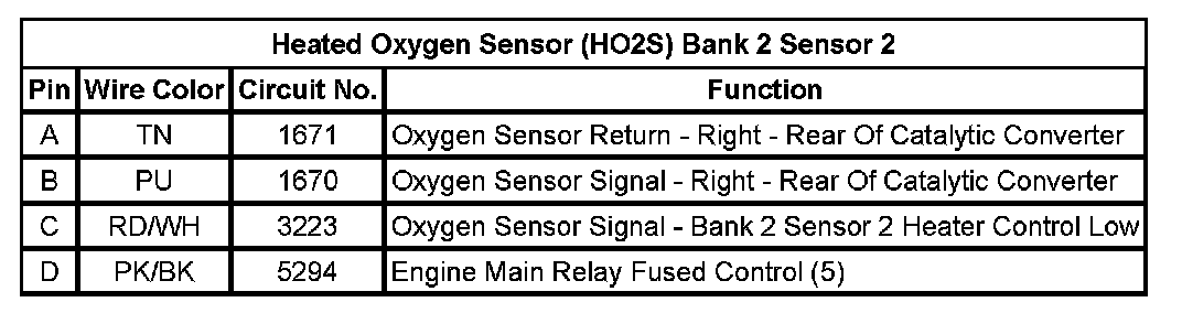 Heated Oxygen Sensor (HO2S) Bank 2 Sensor 2