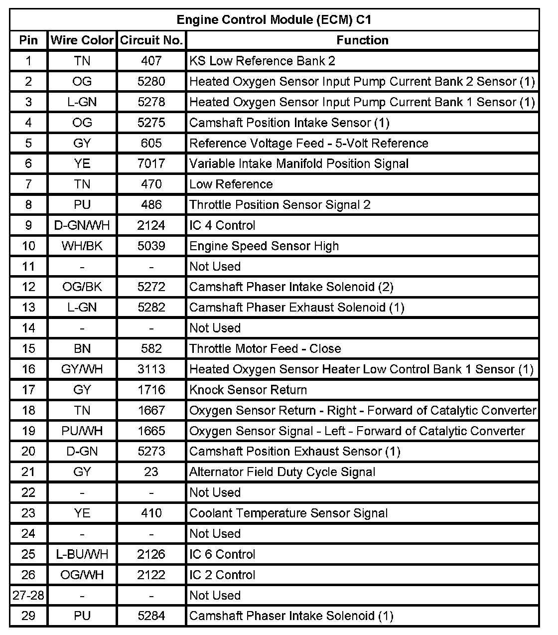 Engine Control Module (ECM) C1 (Pin 1 To 29):
