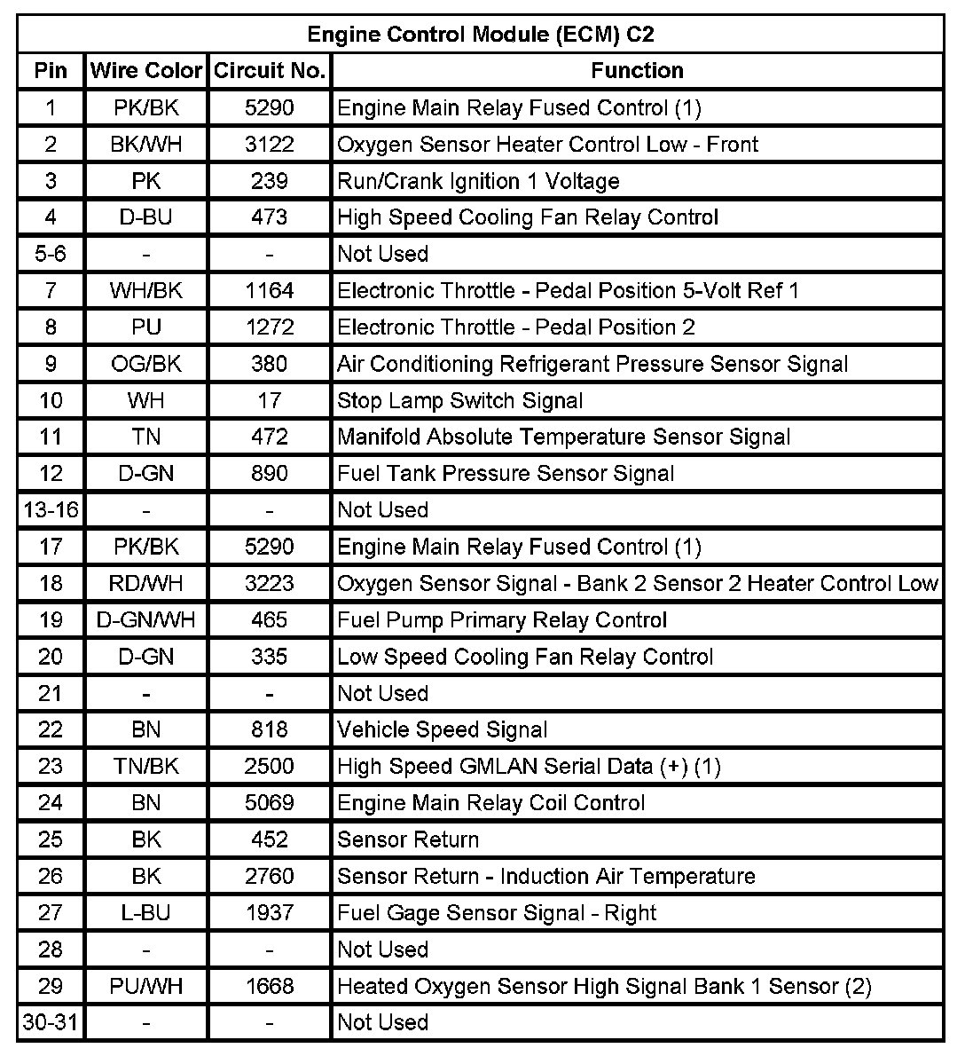 Engine Control Module (ECM) C2 (Pin 1 To 31):