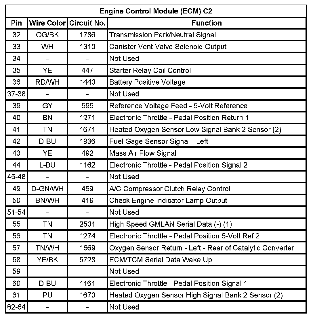 Engine Control Module (ECM) C2 (Pin 32 To 64):