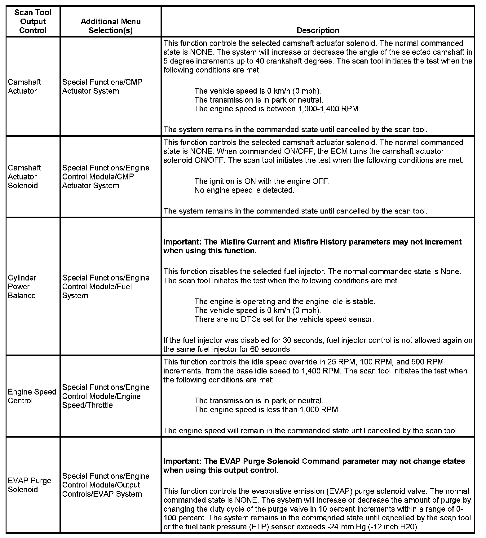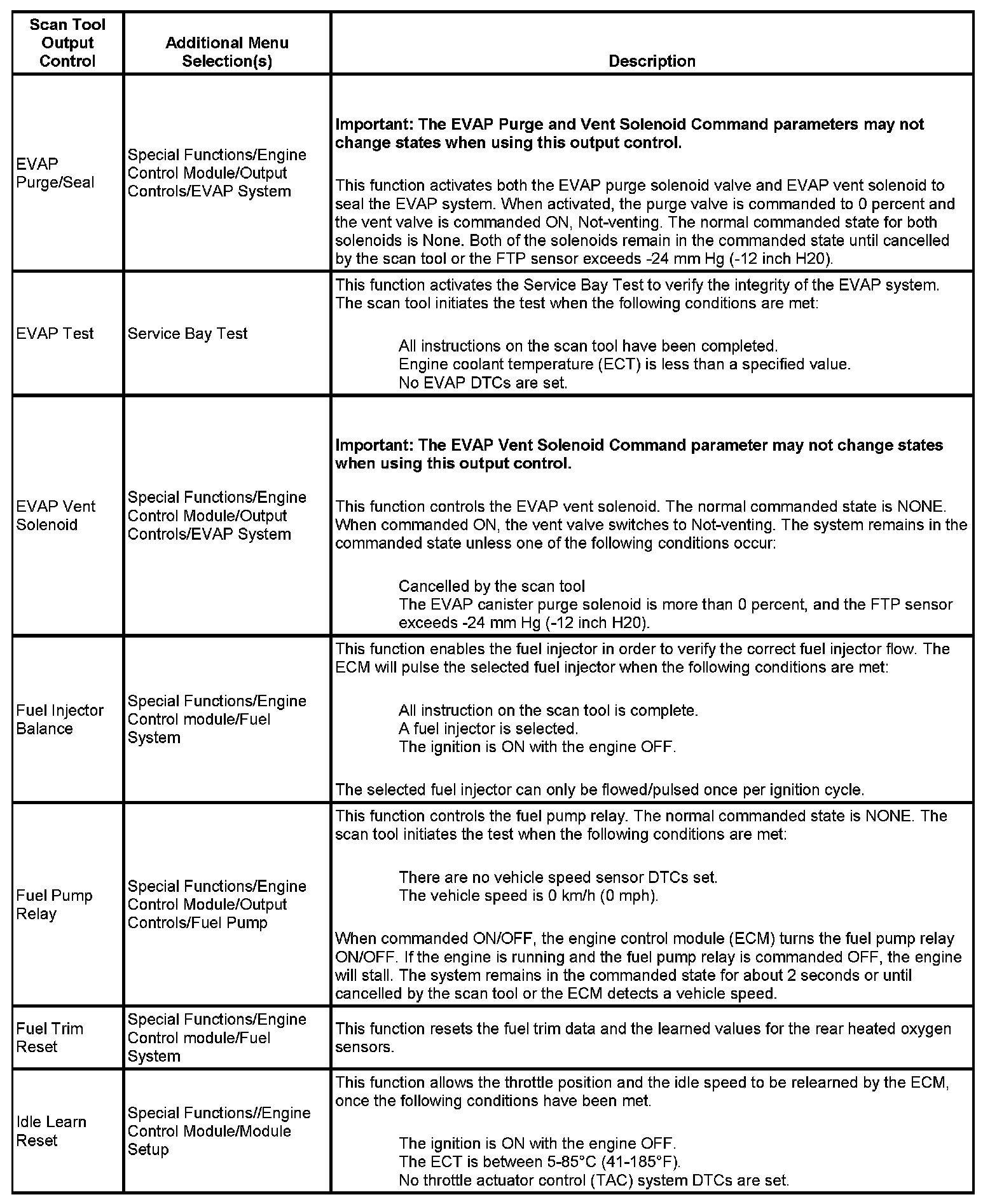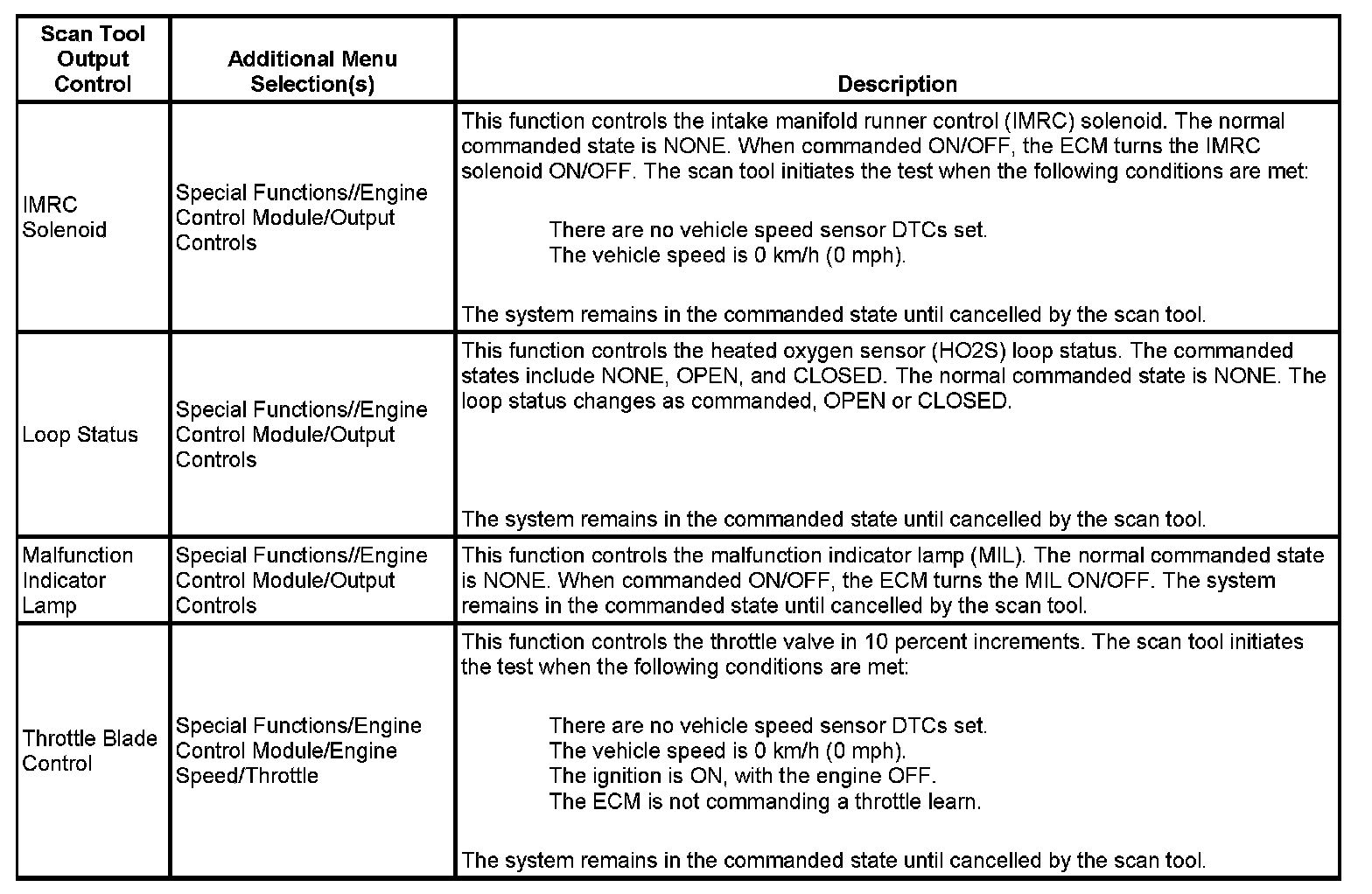 Scan Tool Output Controls