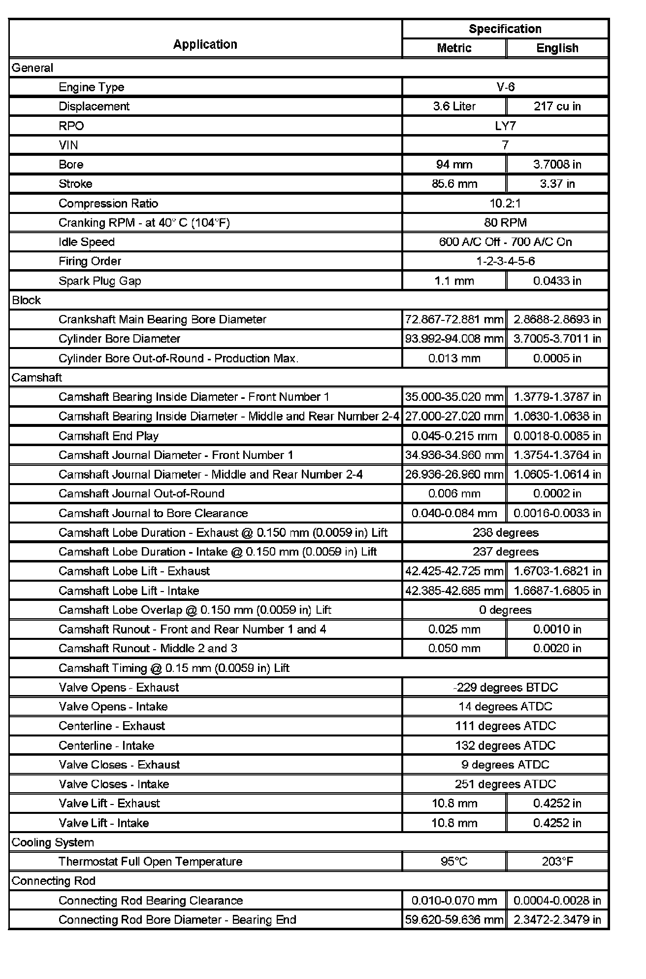Home >> Cadillac >> 2007 >> STS AWD V6-3.6L >> Repair and Diagnosis >> Specifications >> Mechanical Specifications >> Engine >> System Specifications >> Engine General Specifications & Service Limits