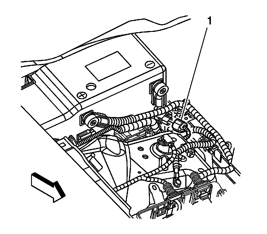 1. Disconnect the instrument panel (I/P) harness electrical connector (1) from the battery current sensor.