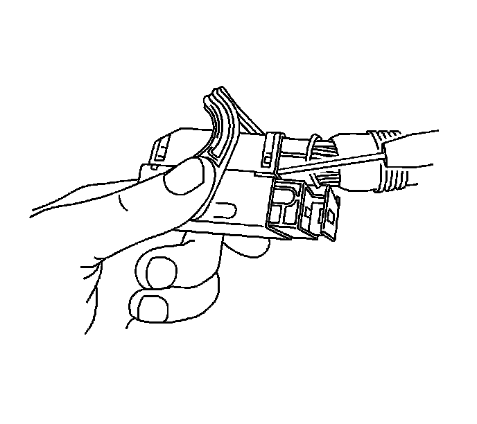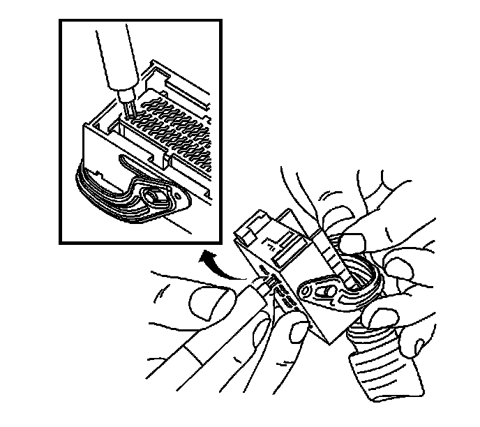 11. Insert the J 38125-560 (GM P/N 15314260) into the 2 triangular cavities on each side of the terminal at the front of the connector. See the release tool cross reference in the Reference Guide of the J-38125 to ensure that the correct release tool is used.