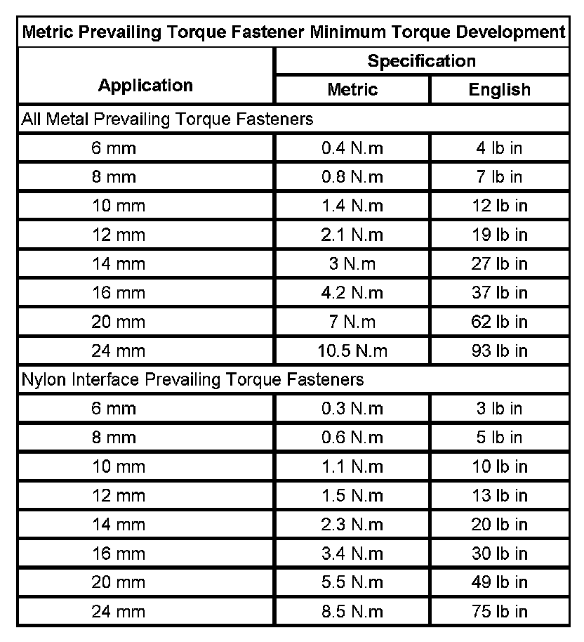 * The fastener develops the specified minimum torque against its counterpart prior to the fastener seating