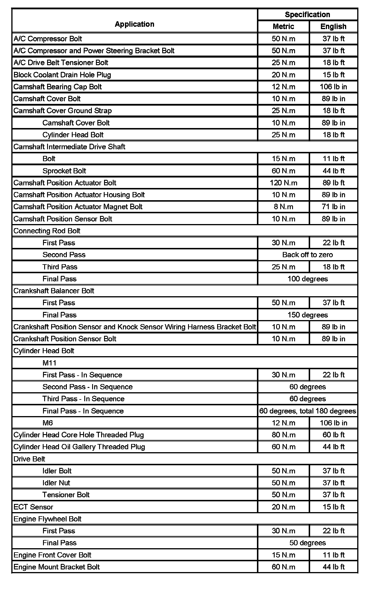 Fastener Tightening Specifications (Part 1):
