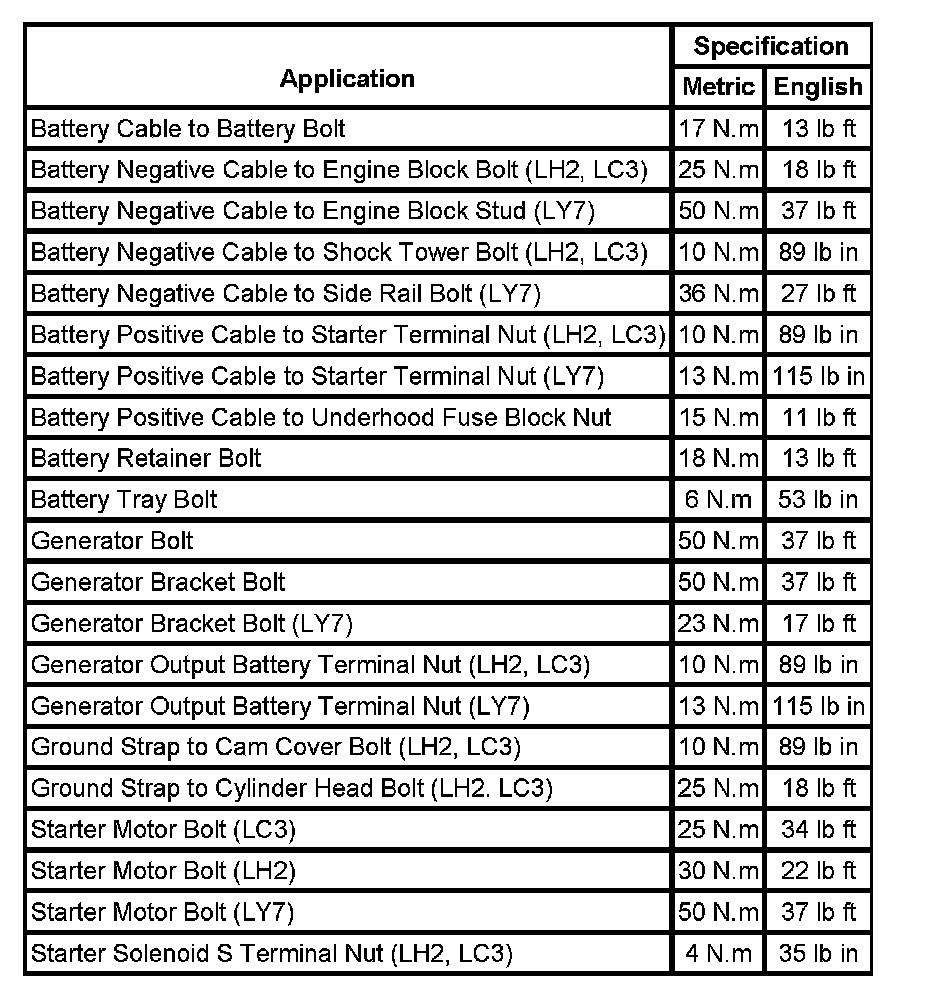 Starting and Charging: Specifications