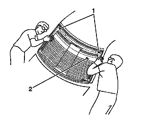9. With the aid of an assistant, use the suction cups in order to lift the rear window (2) from the opening.