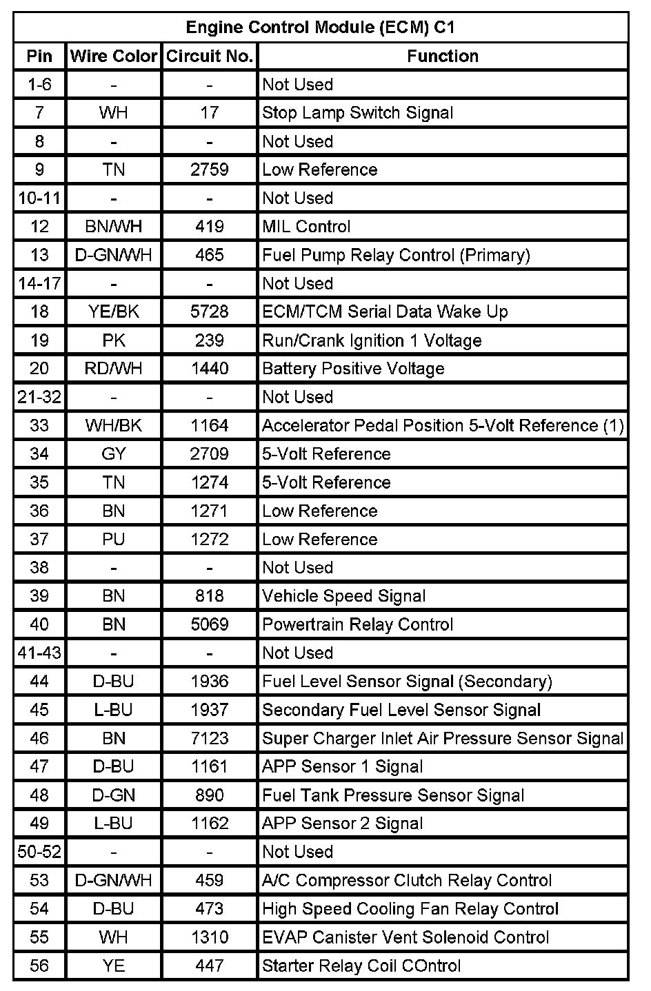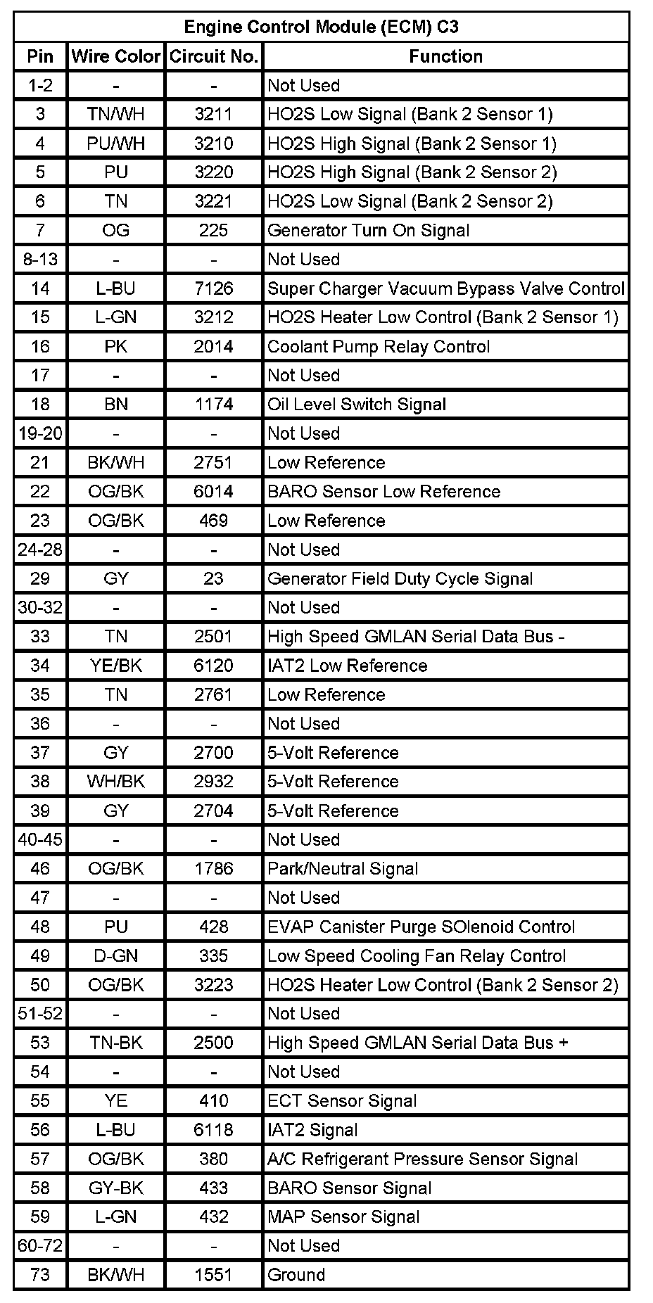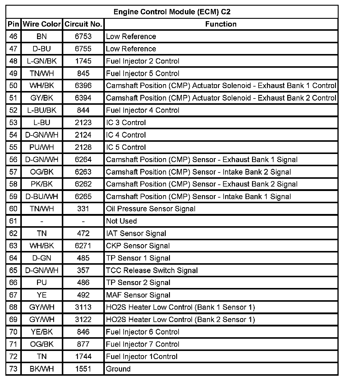 Engine Control Module (ECM) C2 (Pin 46 To 73):