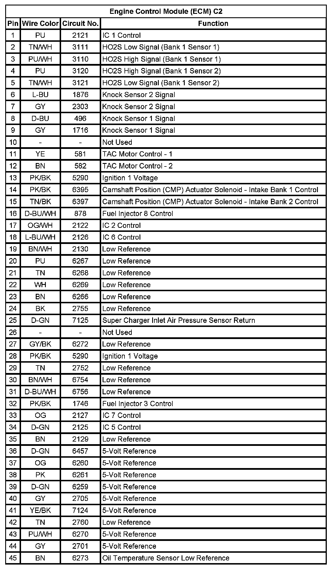 Engine Control Module (ECM) C2 (Pin 1 To 45):