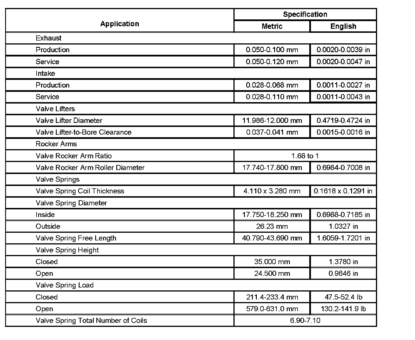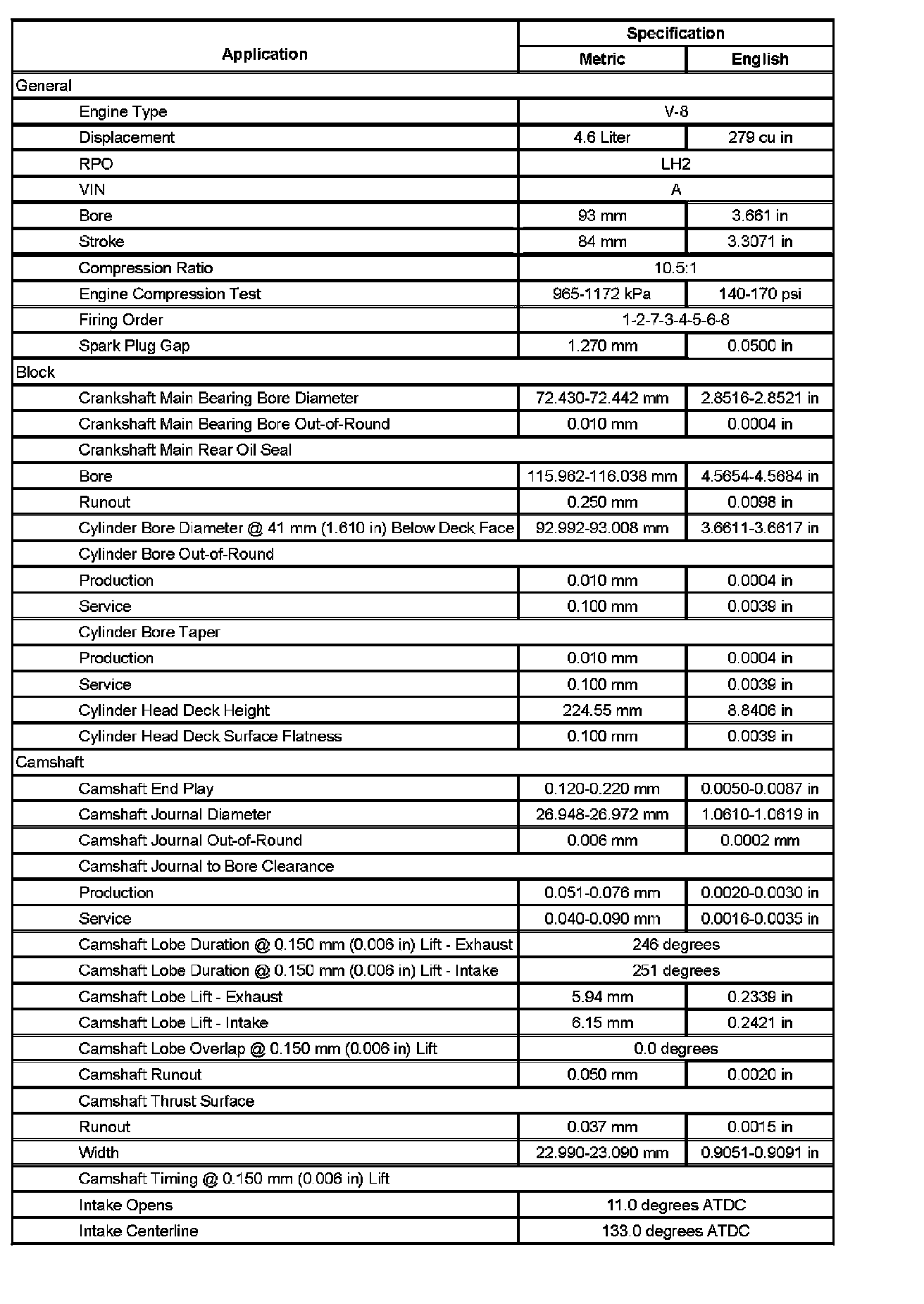 Engine Mechanical Specifications (Part 2):