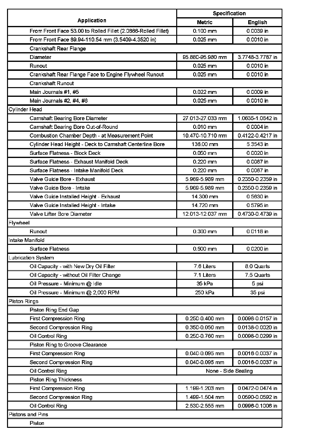 Engine Mechanical Specifications (Part 5):