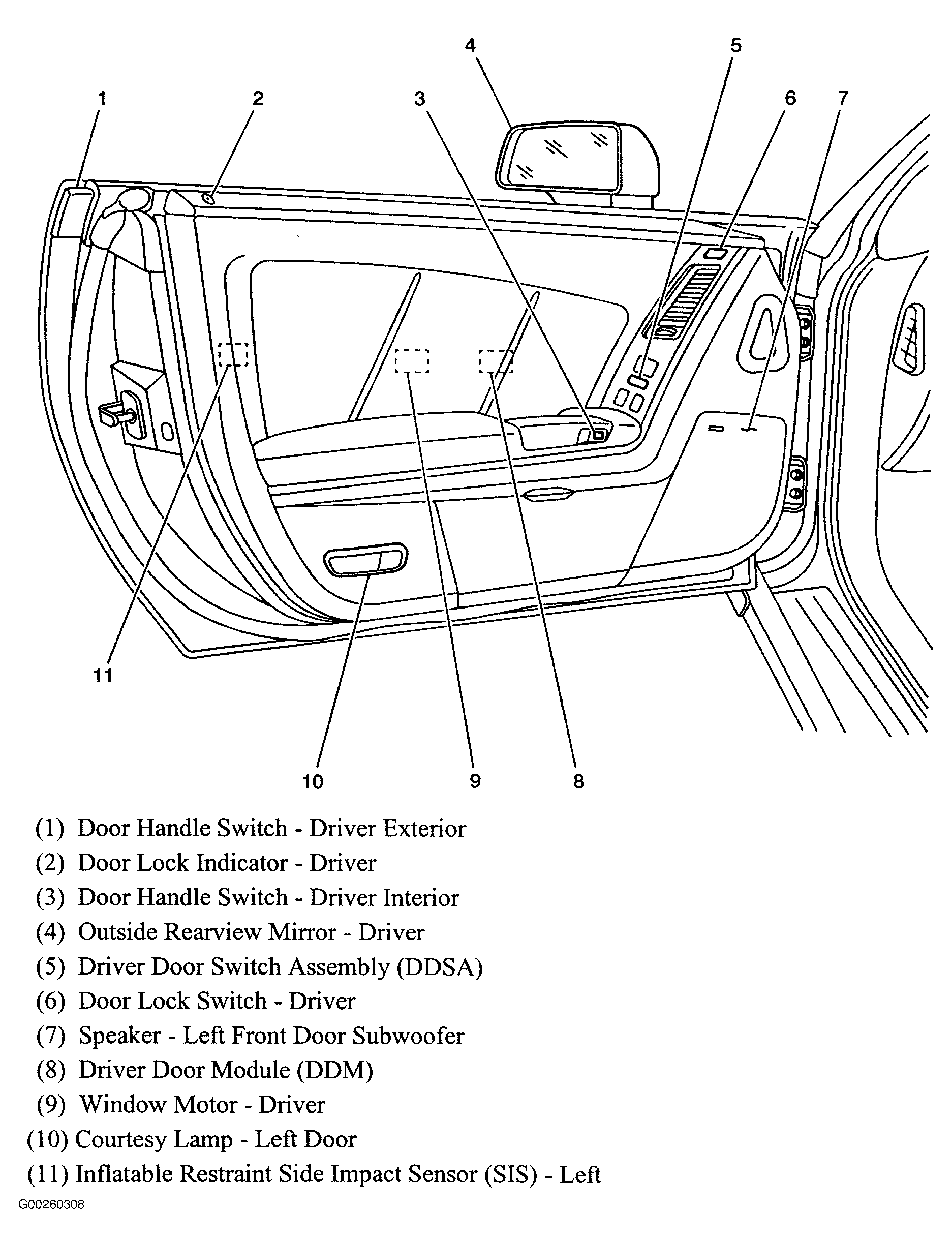 | Driver Door Module (DDM) | In driver's door. See Figure. |
