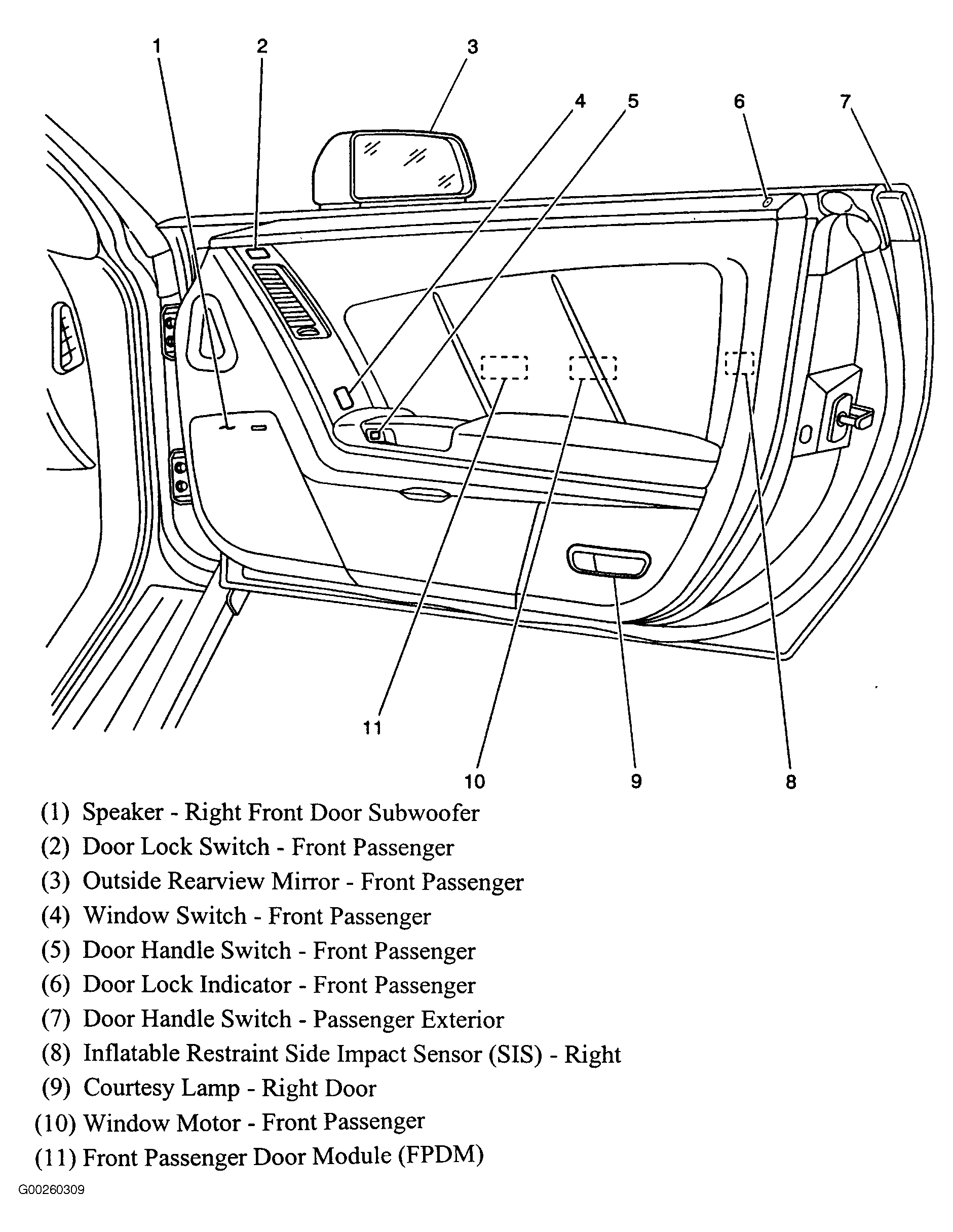 | Front Passenger Door Module (FPDM) | In front door. See Figure. |