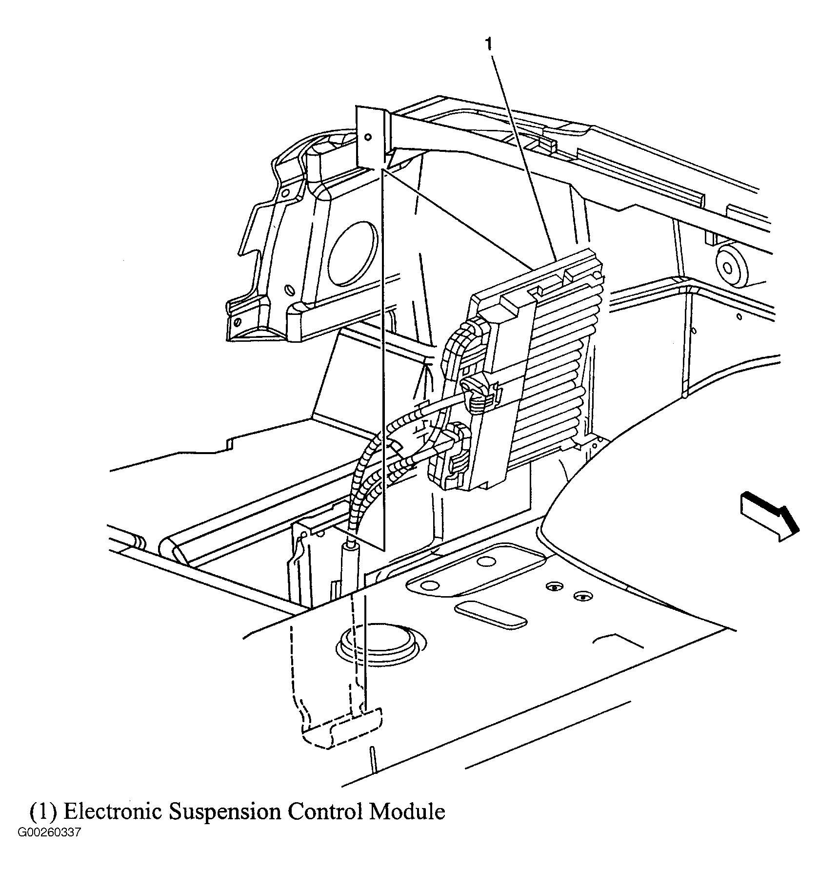 | Electronic Suspension Control Module | Left rear of luggage compartment. See Figure. |