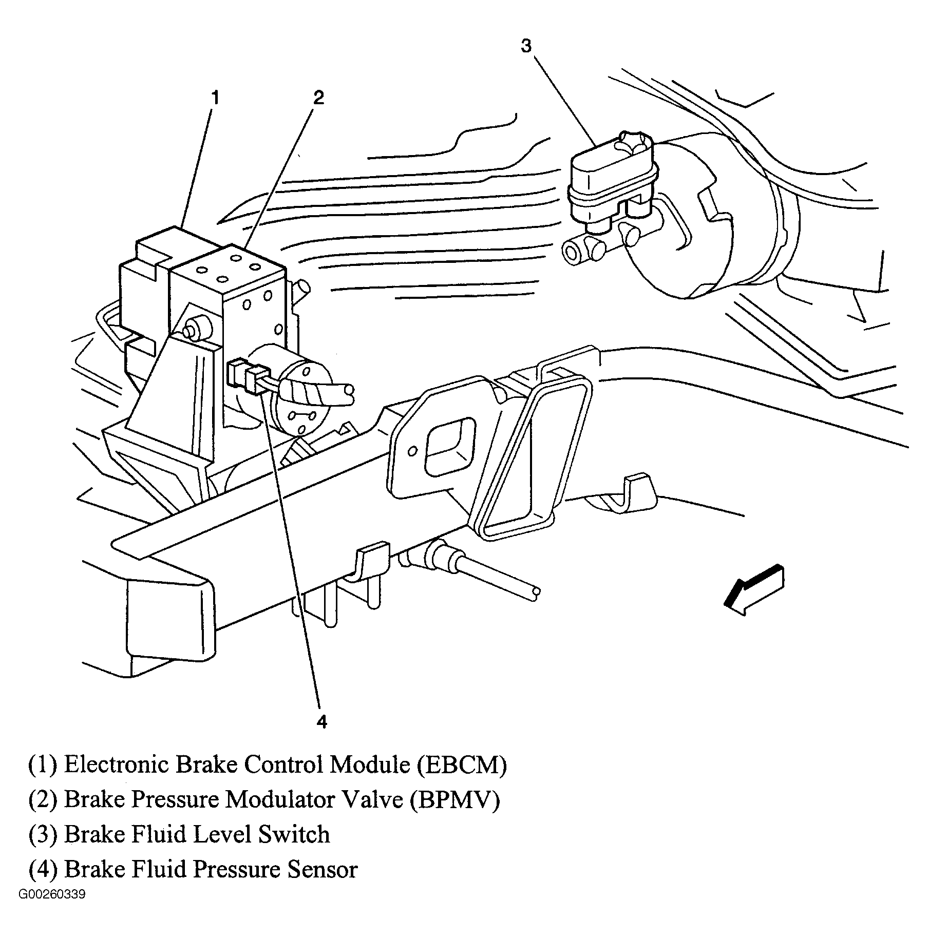 | Electronic Brake Control Module (EBCM) | Left front of engine compartment. See Figure. |