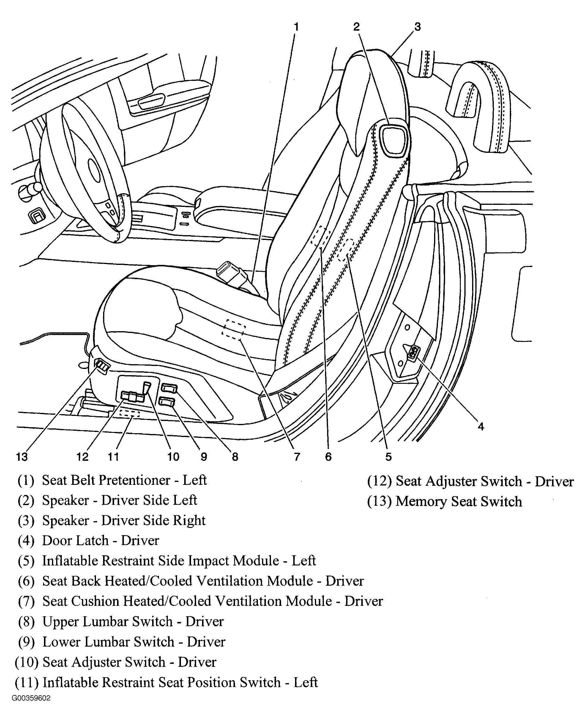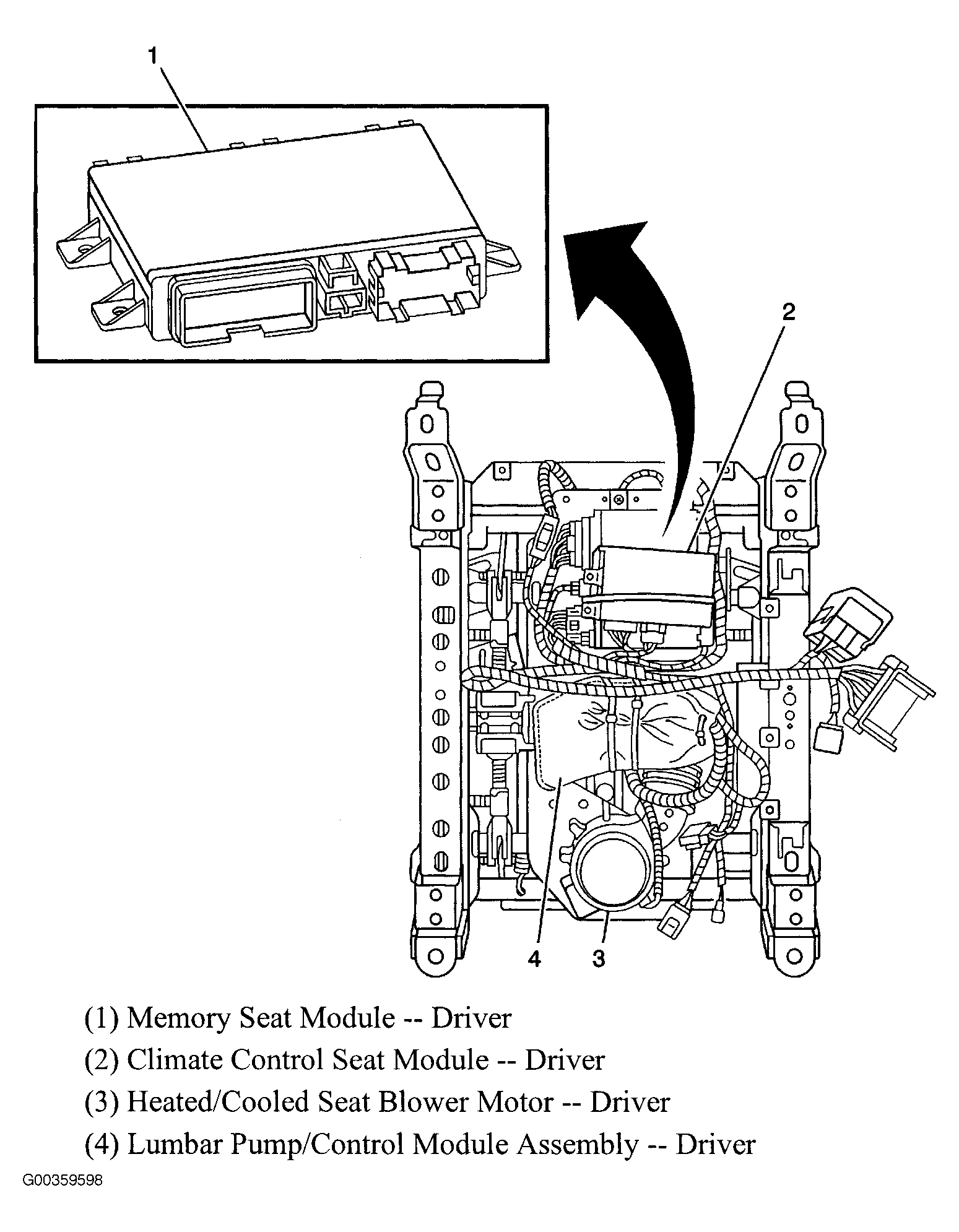 | Seat Back Heated/Cooled Ventilation Module - Driver | In driver's seat back. See Figure. |