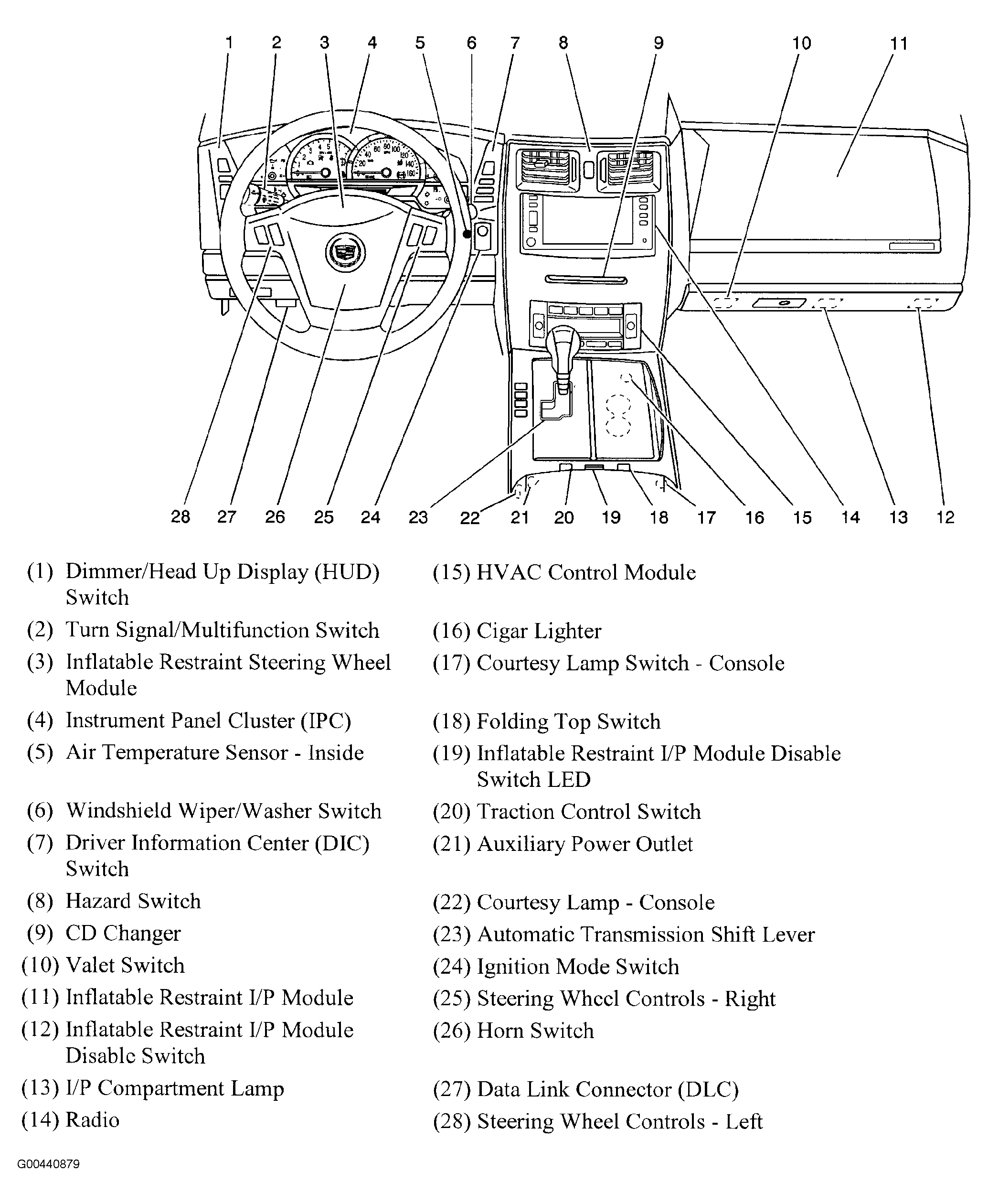 | Inflatable Restraint I/P Module | Right side of dash. See Figure. |