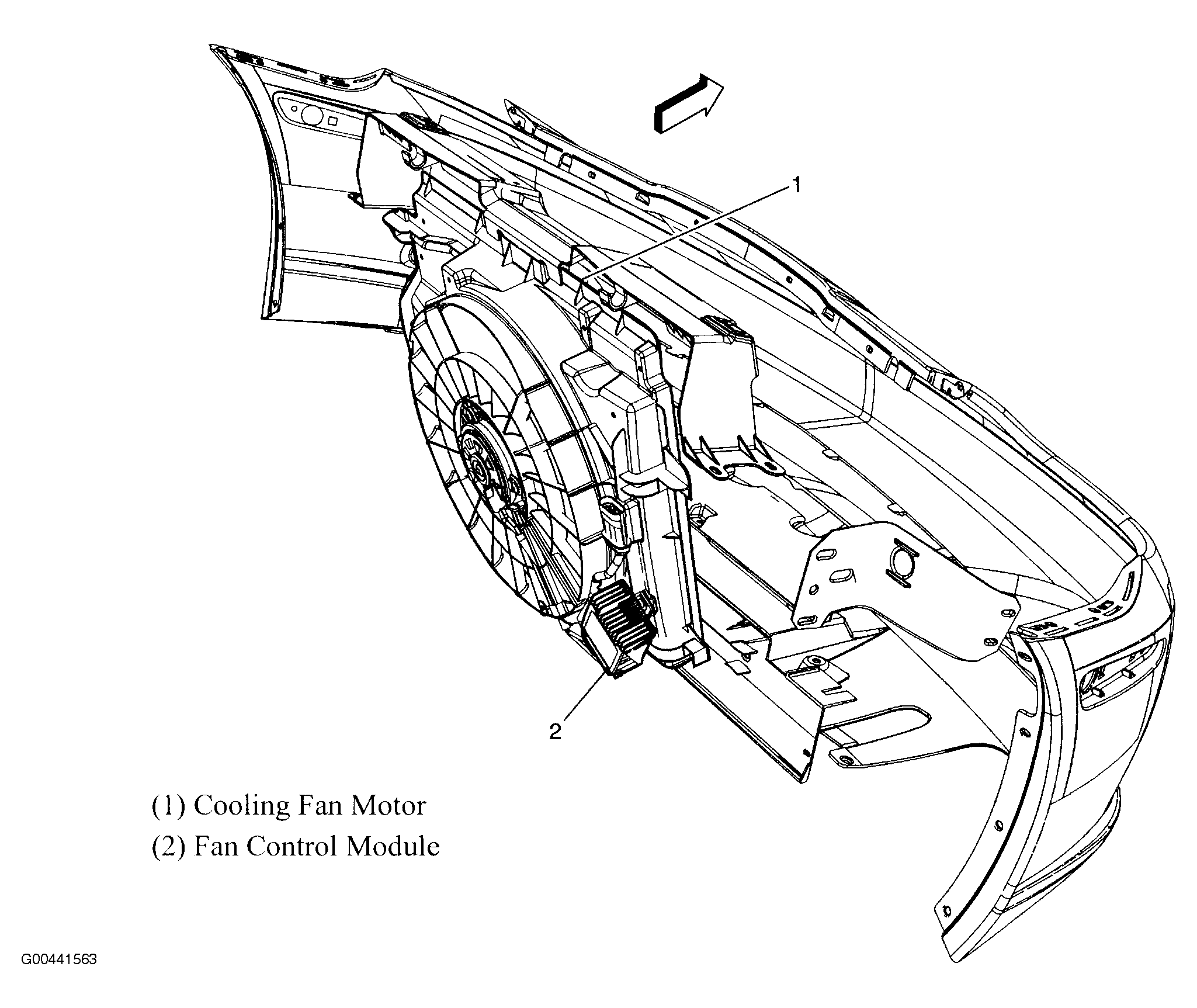 | Fan Control Module | At lower right of cooling fan. See Figure. |