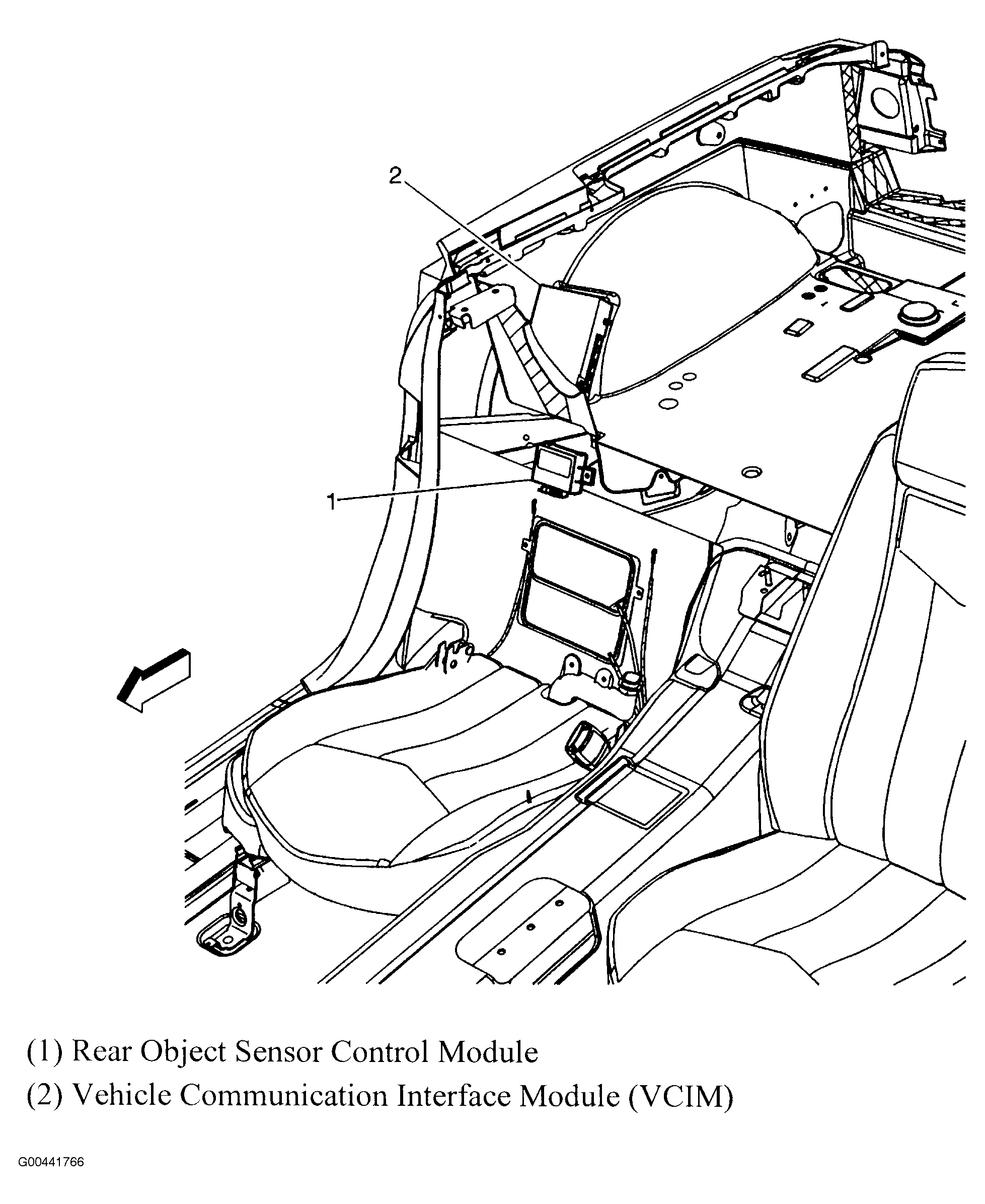 | Rear Object Sensor Control Module | Behind rear compartment stowage trim panel. See Figure. |