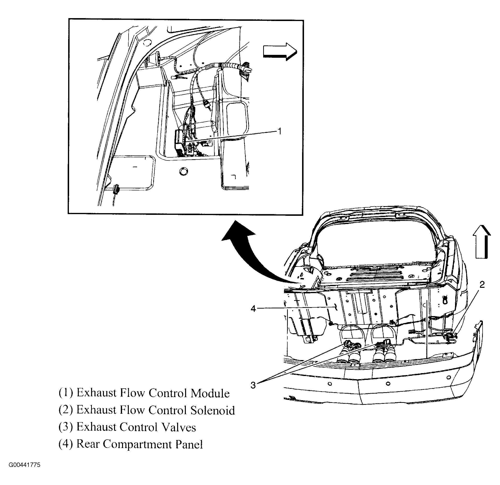 | Exhaust Flow Control Module | Left rear of vehicle. See Figure. |