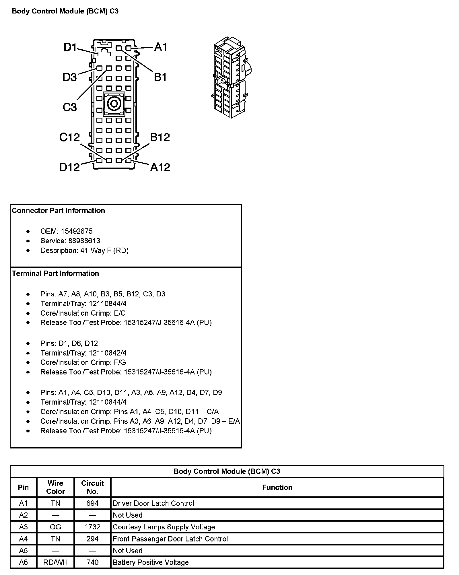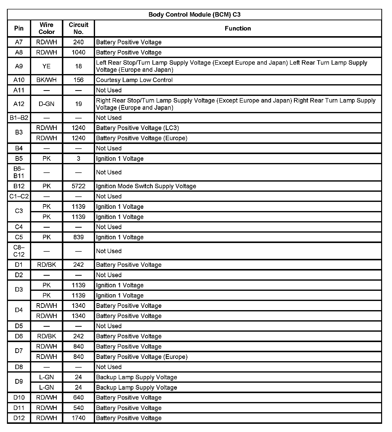 Body Control Module (BCM) C3 (Pin A7 To D12):