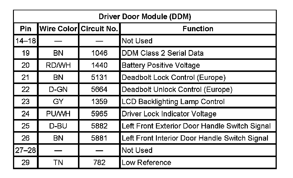 Front Passenger Door Module (FPDM) (Pin 12 To 29):