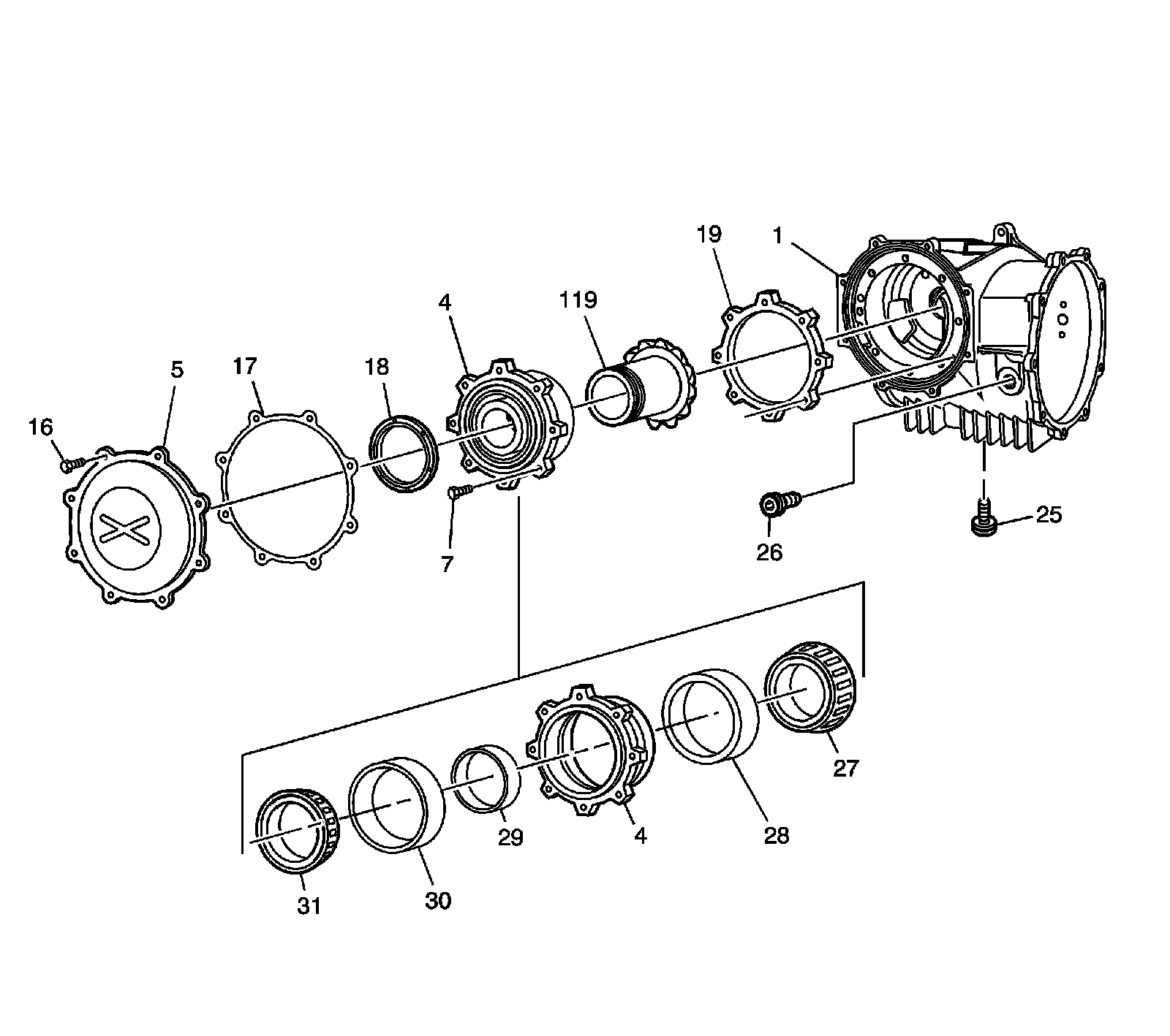 4 - Pinion Housing/Cage - with Bearings and Spacer