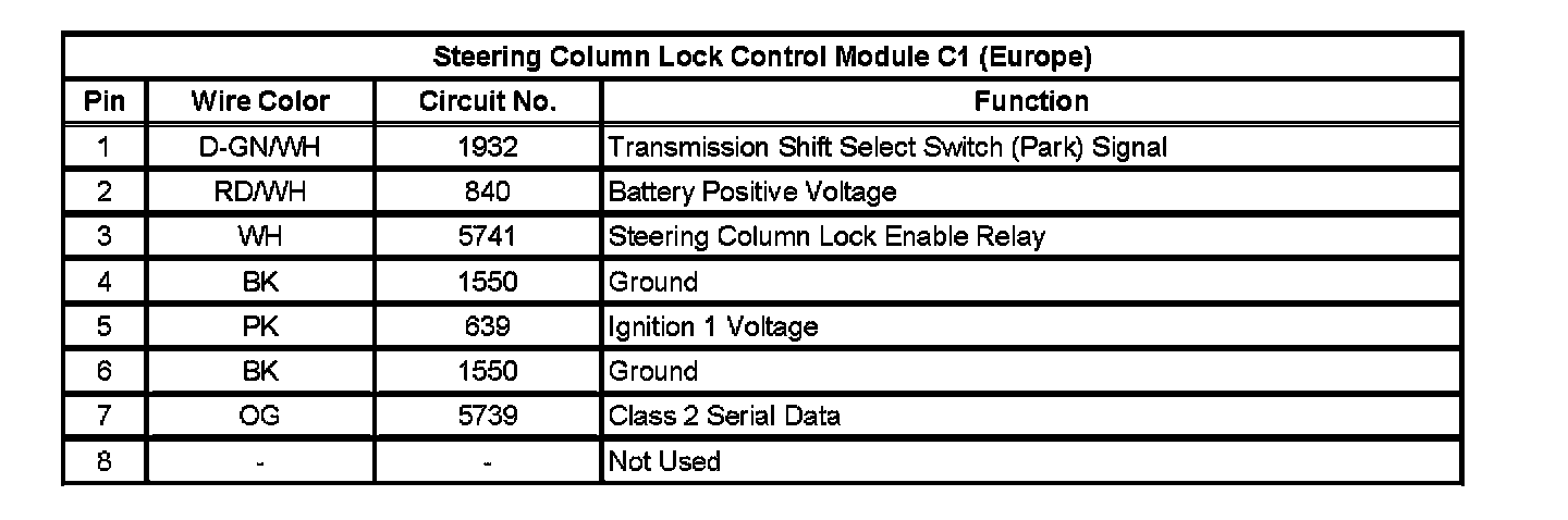 Steering Column Lock Control Module C1 (Europe):