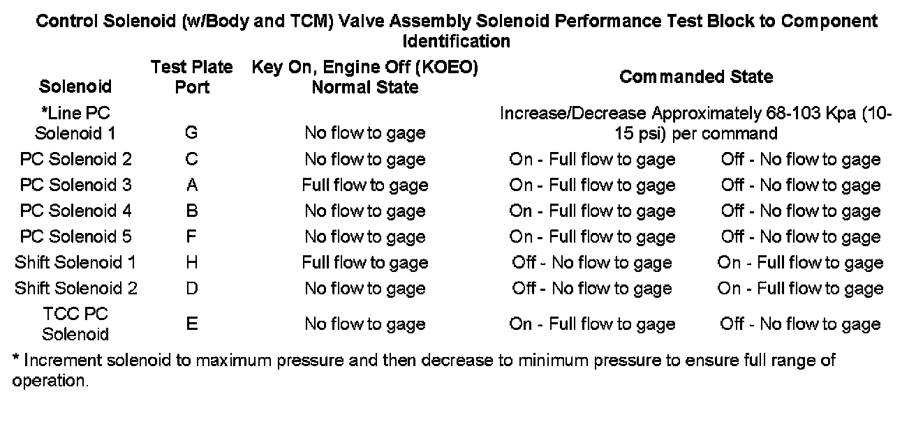 Control Solenoid Valve and Transmission Control Module Assembly Solenoid Performance Test