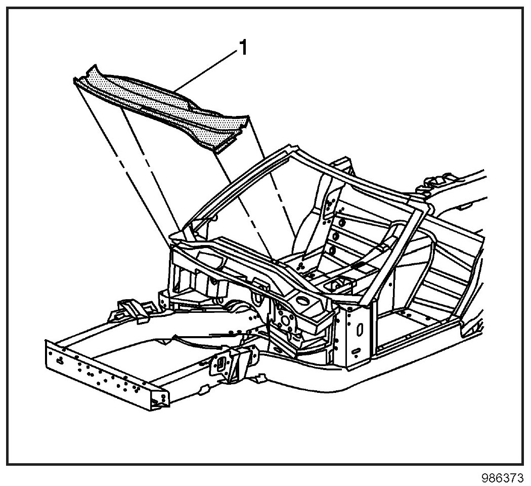7. Apply structural adhesive to bond the lower plenum to the windshield frame. Refer to Sheet Molded Compound (SMC) Panel Bonding .