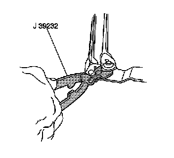 2. Using the J 39232 , disconnect the wiper transmission from the wiper motor crank arm to aid in the removal of the wiper drive system module.