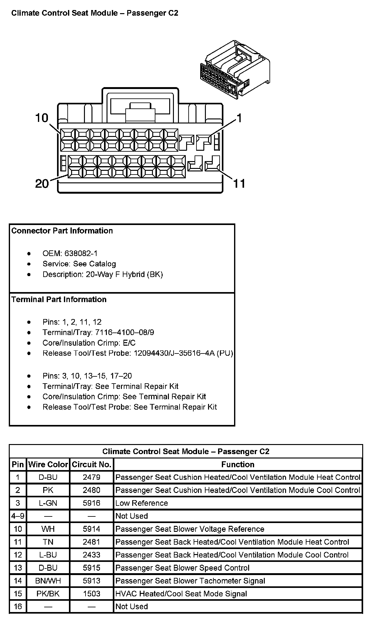 Climate Control Seat Module - Passenger C2 (Pin 17 To 20):